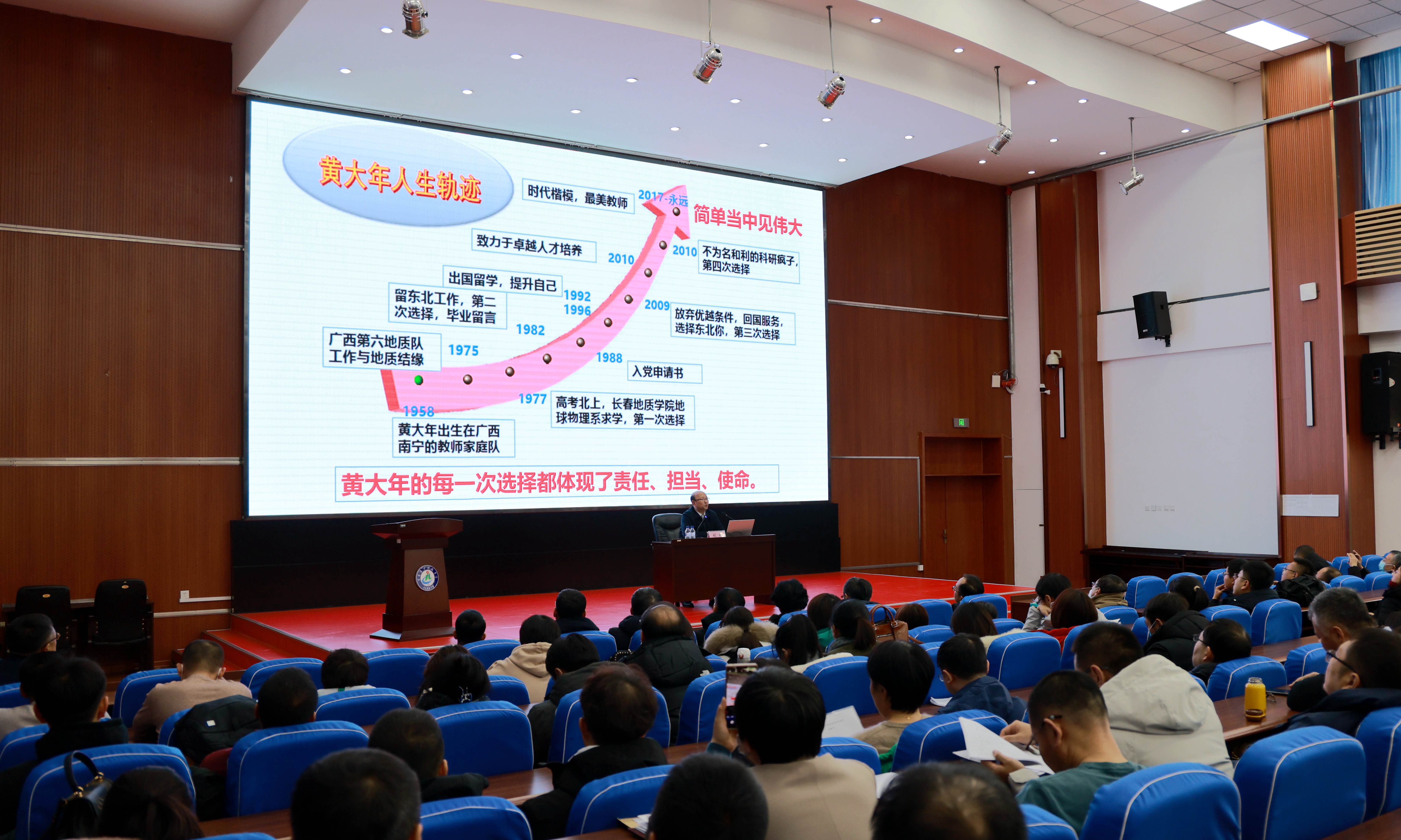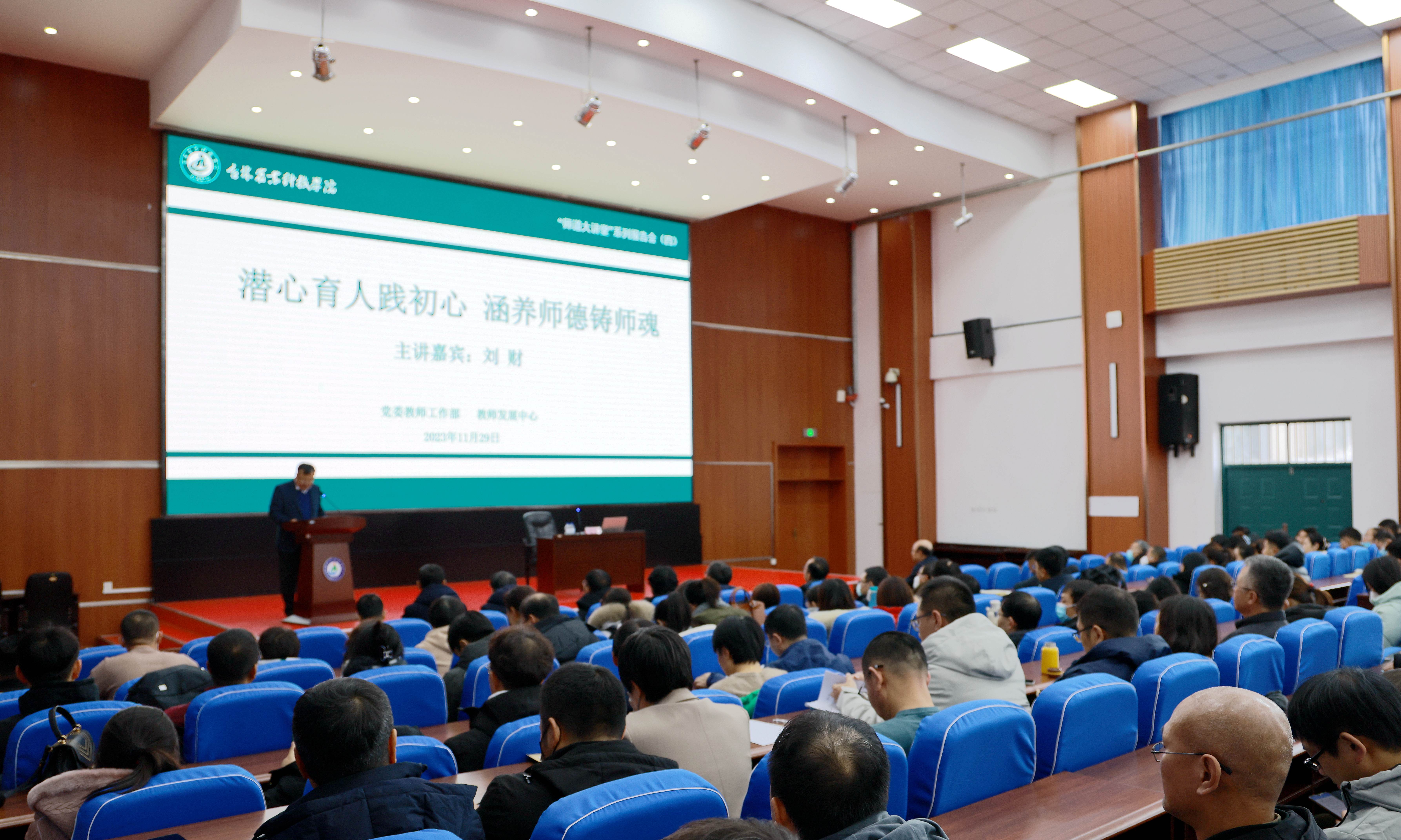 为进一步加强新形势下师德师风建设,筑牢广大教师为党育人、为国育才初心使命,11月29日下午,学校在第一报告厅举办“师道大讲堂”专题报告会。学校邀请吉林大学刘财教授作以《潜心育人践初心 涵养师德铸师魂——让黄大年精神指引教师发展》为题的师德师风专题报告。学校领导和全体教师共同参加报告会,左家校区教师通过网络直播听取报告。报告会由党委常委、教师工作部部长沈宪文主持。