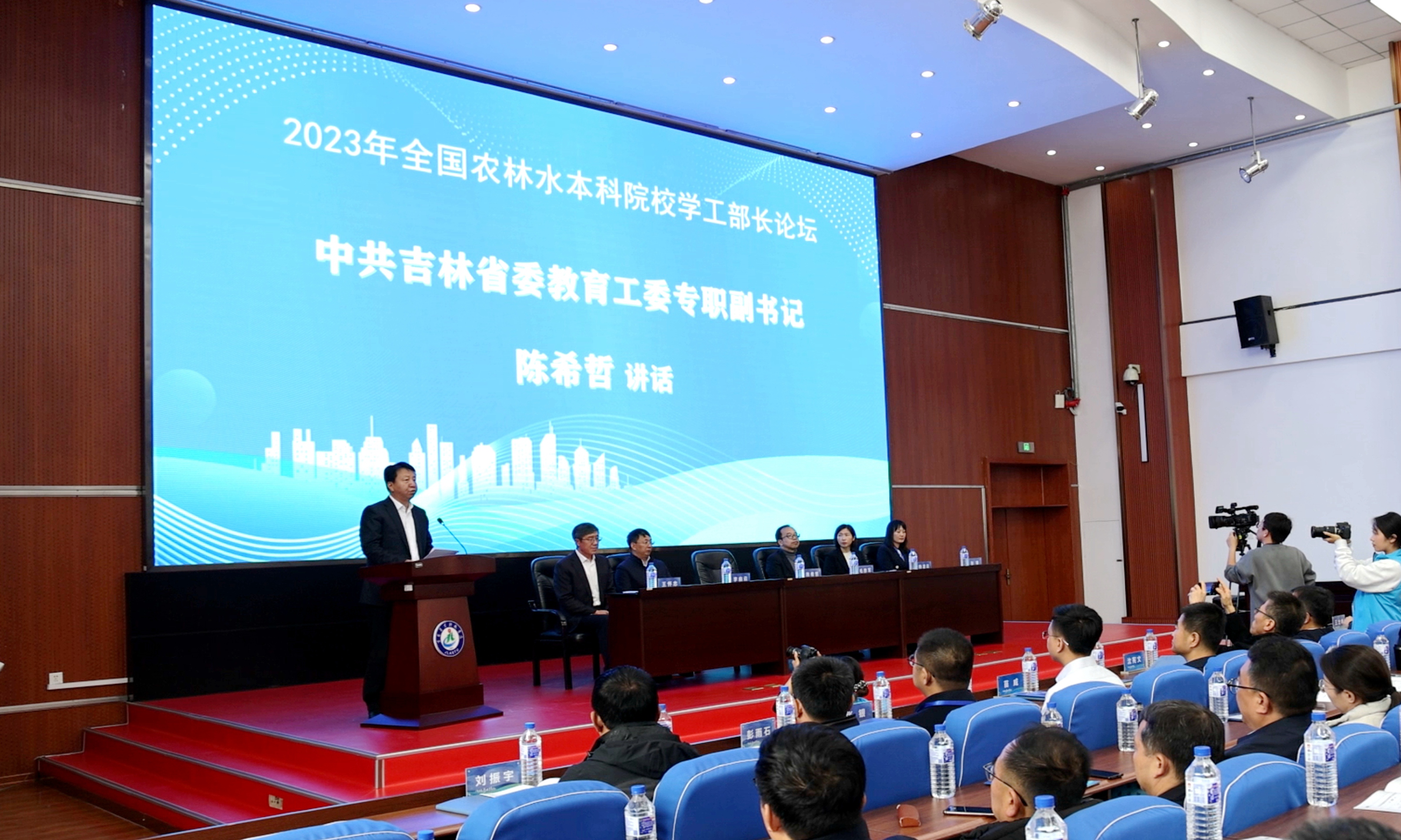 11月9日,为期两天的2023年全国农林水本科院校学工部长论坛在吉林农业科技学院召开。来自中国农业大学、华中农业大学、东北农业大学、西北农林科技大学等41所农林水本科院校的学工部长参加论坛,聚焦新形势新要求,共商全面提升农林水本科院校思想政治工作质量的新途径新举措。中共吉林省委教育工委专职副书记陈希哲、吉林市教育局局长杨凌云及吉林农业科技学院党委书记毛彦军、校长李启云出席开幕式。开幕式由吉林农业科技学院党委副书记王怀忠主持。