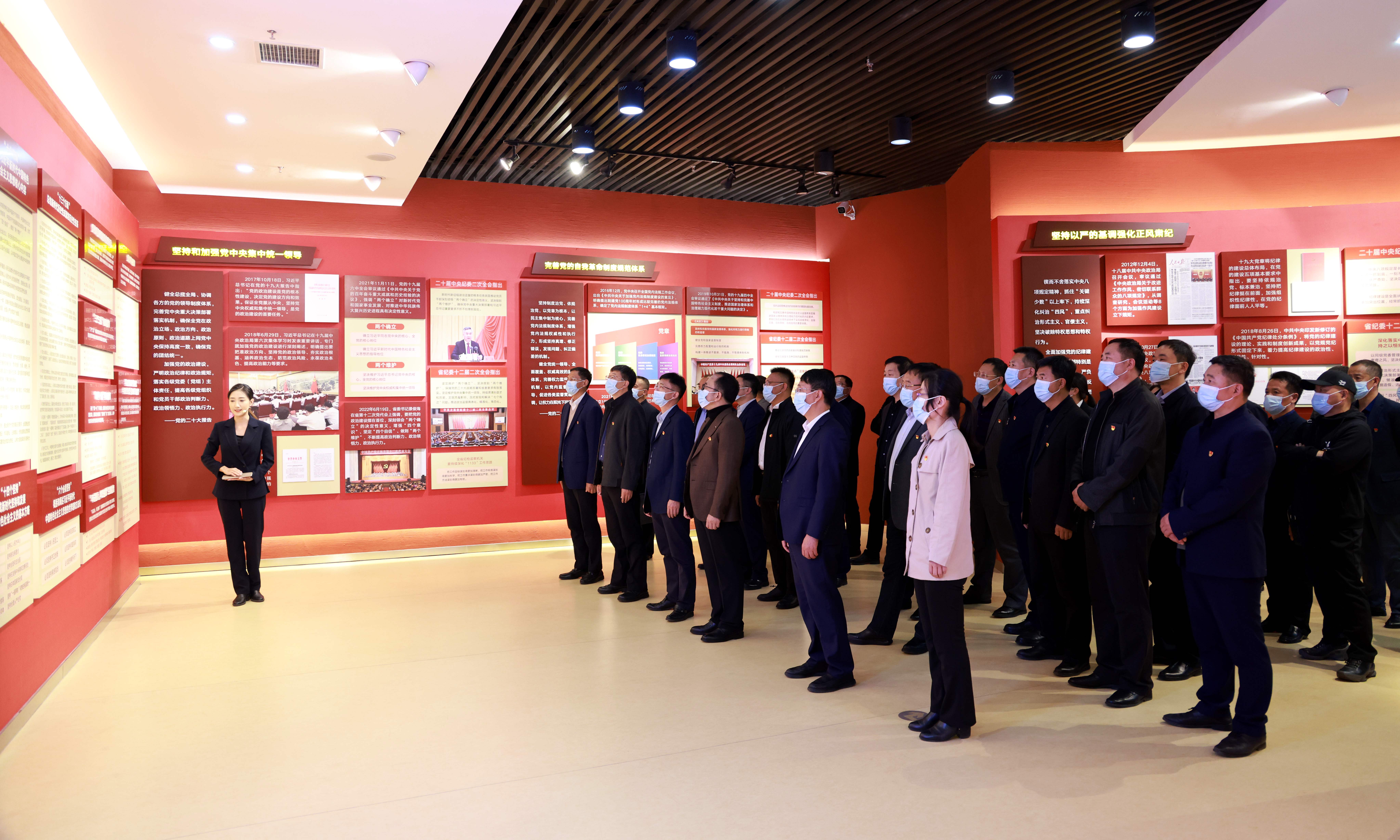 在讲解员的引导下,全体人员参观了“全面从严治党永远在路上”主题展览。展览生动详实,分为“举旗定向、固本培元”“以案促改、标本兼治”“忏悔警示、引为镜鉴”三个板块,通过图片文字、影音资料等方式展示了全面从严治党、党风廉政建设和反腐败斗争的新部署、新要求、新举措、新成效,具有很强的警示教育作用。特别是高校领域典型腐败案件展示,深入剖析典型案例特点,产生问题的根源,给大家上了一堂生动、震撼的警示教育课。通过参观,大家深刻认识到了严重违纪违法涉嫌犯罪给个人、家庭、事业及社会带来的严重影响及危害。