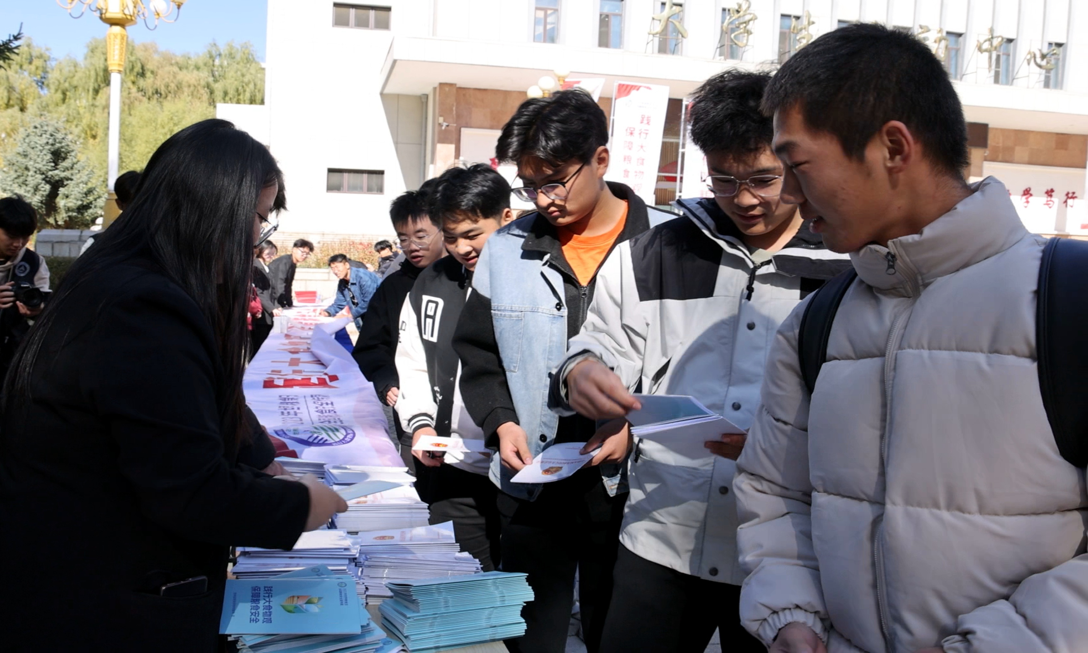 仪式上,我校学生代表向全省高校发出“爱粮节粮、文明就餐”主题倡议,长春市九台区龙嘉街道红光村分享了保障国家粮食安全典型经验,现场还播放了《深耕节粮减损 再造无形良田》宣教片。活动现场发放了《践行大食物观 保障粮食安全》宣传册,与会领导嘉宾参观了我校实物成果展和吉林省酿造技术科技创新中心,并在宣传条幅上签字留念。