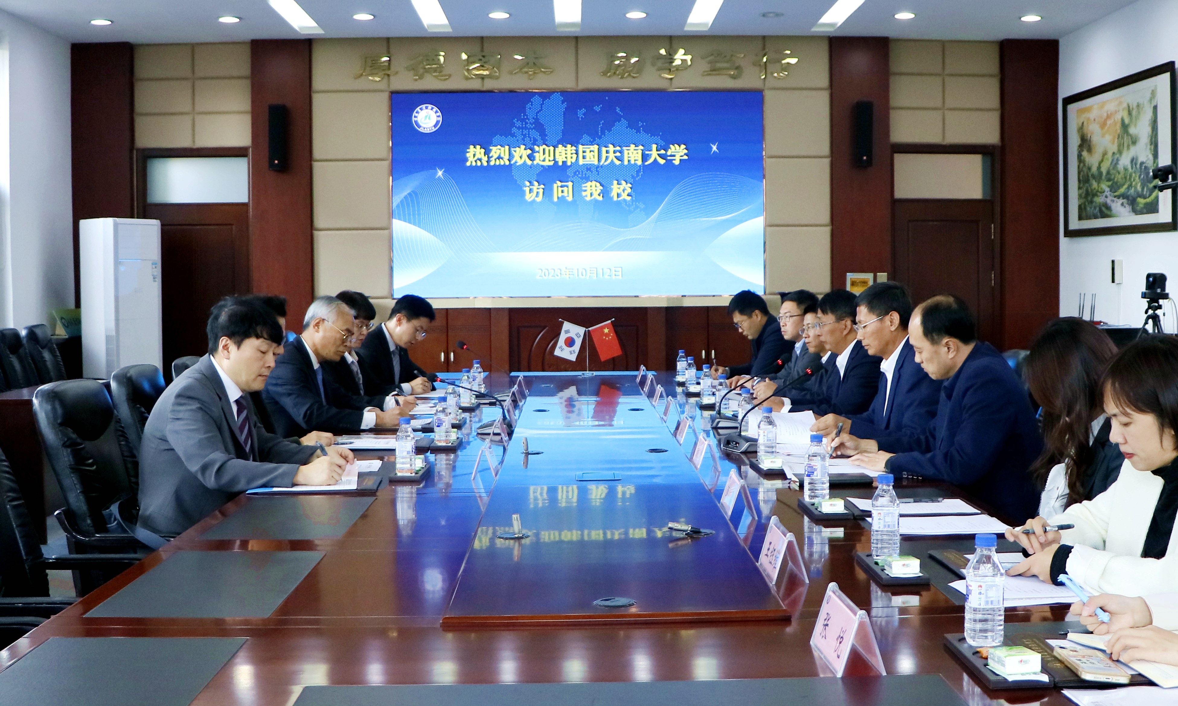 10月12日下午,庆南大学副校长朴在润带领机械工学部教授安大健、国际处处长兼中韩交流合作院院长洪瑄英、国际处部长高健荣、中韩交流合作院副院长裴大庸以及中国办事处代表韩晶一行到校访问。我校校长李启云、副校长潘力、副校长尹柏双及机械与土木工程学院、国际合作与交流处相关领导、教师出席相关会议。