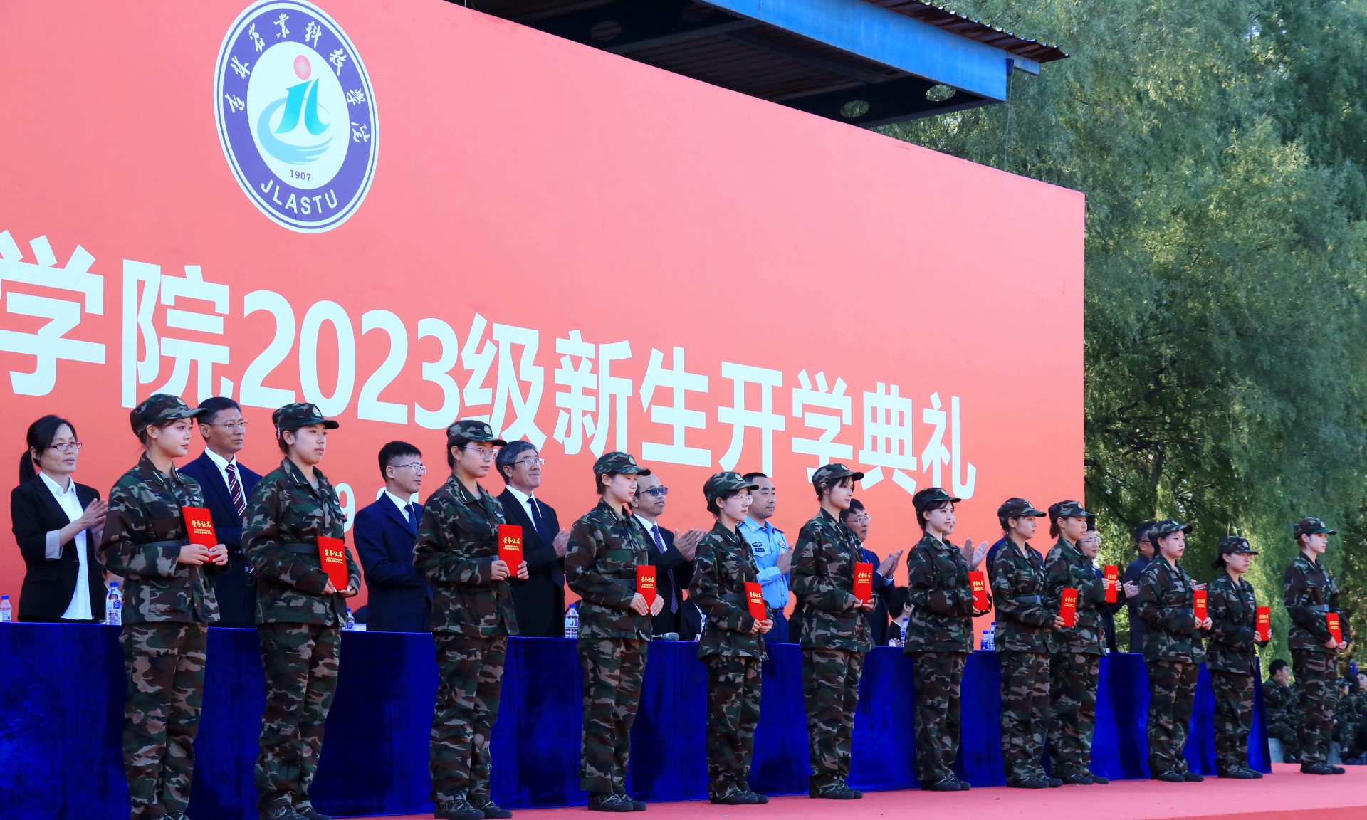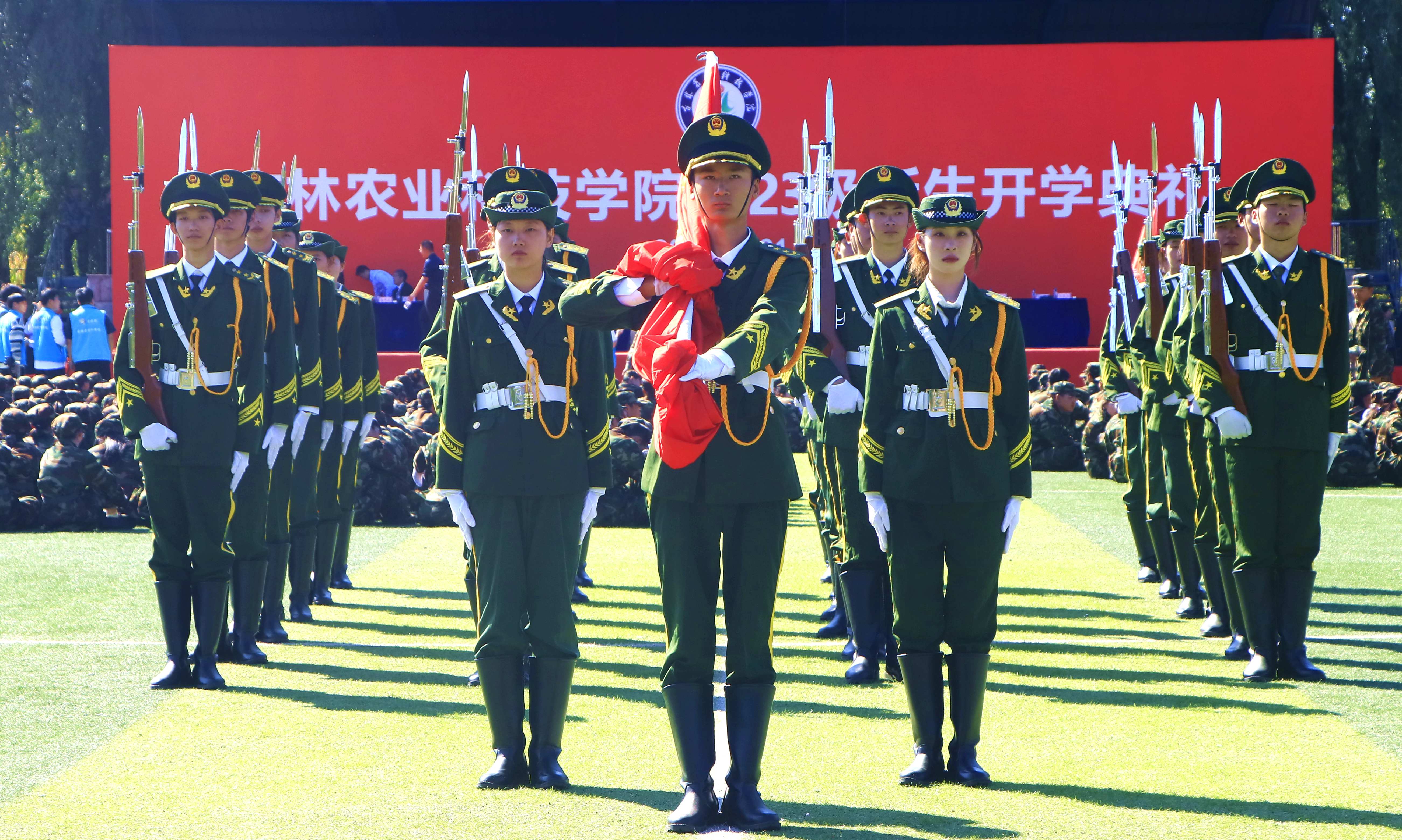 典礼最后,全场师生齐声高唱校歌《铸青春风骨》,嘹亮的声音在运动场上空回响,为2023级新生开学典礼画上了完美的句号,也为同学们“学在农院、农业报国”的青春梦想拉开了序幕。