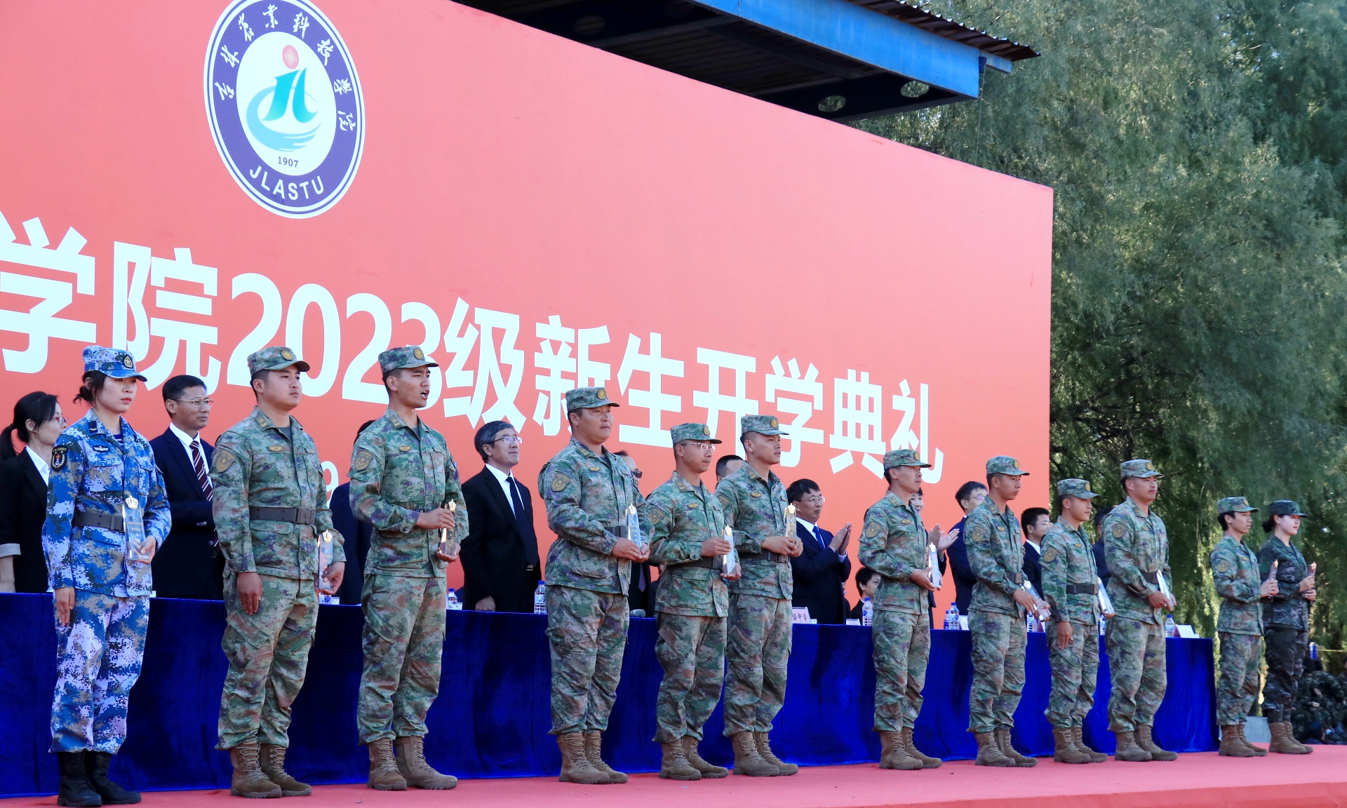 典礼上,学校党委副书记王怀忠宣读《2022——2023年度先进集体和优秀个人表彰决定》;学生工作处处长王合峰宣读《2023年新生军训表彰决定》。与会领导为获奖先进集体和个人颁发了荣誉证书。