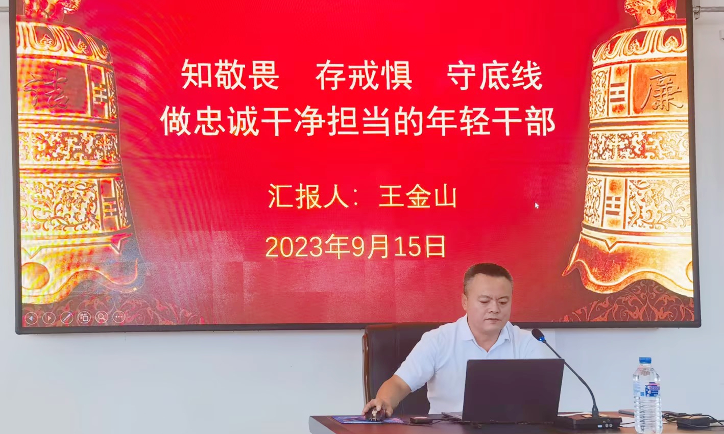 为进一步加强学校学团队伍党风廉政教育,强化师德师风建设,引导辅导员筑牢廉洁思想防线,9月15日下午,学校召开团系统党风廉政教育专题报告会。学校纪委副书记王金山作《知敬畏、存戒惧、守底线——做忠诚干净担当的年轻干部》专题报告,报告会由党委学生工作部部长王合峰主持。