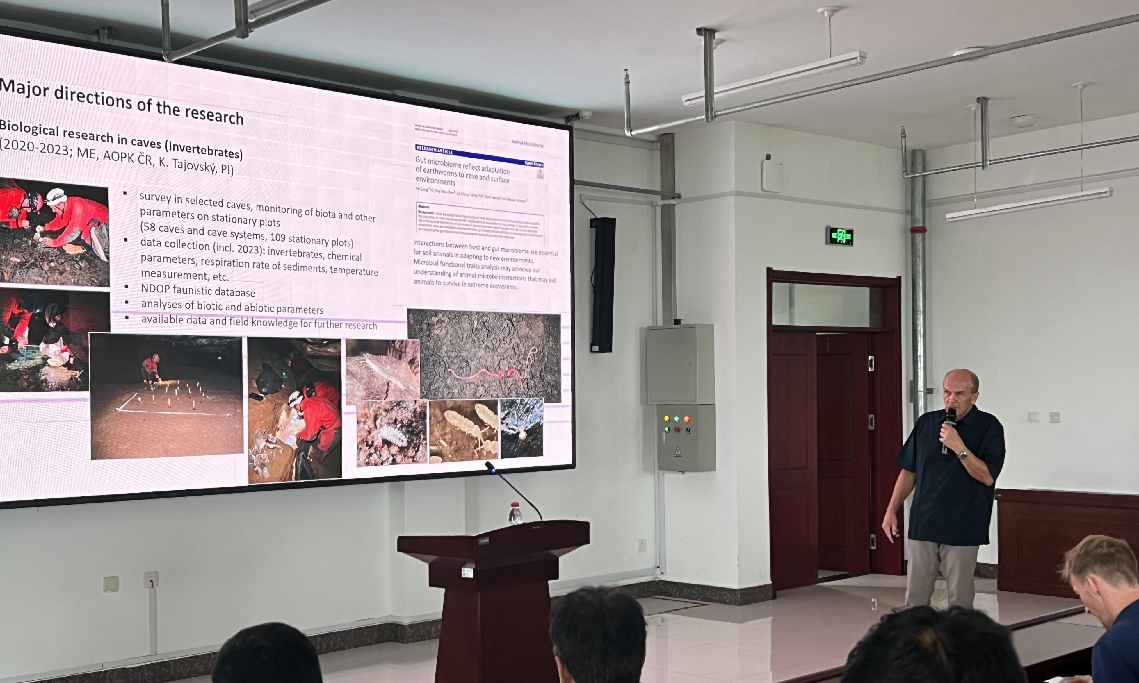 在报告会上,卡尔·塔卓夫斯基教授首先介绍了捷克科学院土壤生物学与生物地球化学研究所的成员组成、研究内容及其研究成果,并以欧洲马陆及其生态功能相关研究为题做了一场学科前沿的精彩报告。依苏·吐马博士以蚂蚁及其生态功能相关研究为题的报告主要介绍了小蠹虫爆发后森林枯死对蚂蚁的影响等方面的研究,并与参会教师及学生代表进行深入交流。