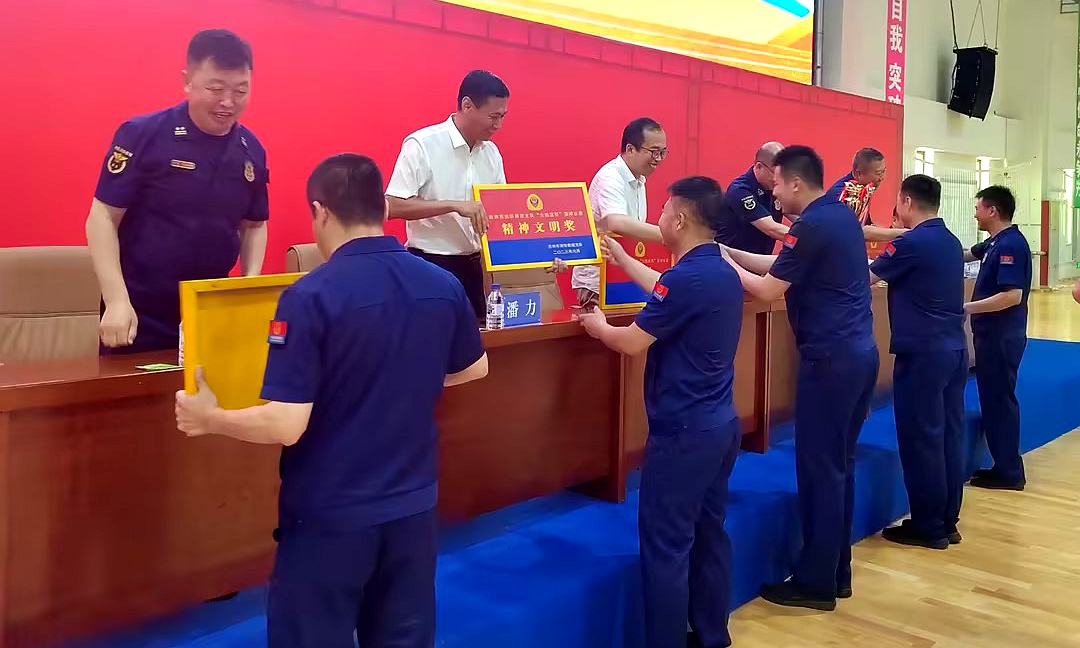 闭幕式上,消防支队领导宣布了比赛结果并致闭幕辞,学校领导与支队领导共同为获奖代表颁奖。