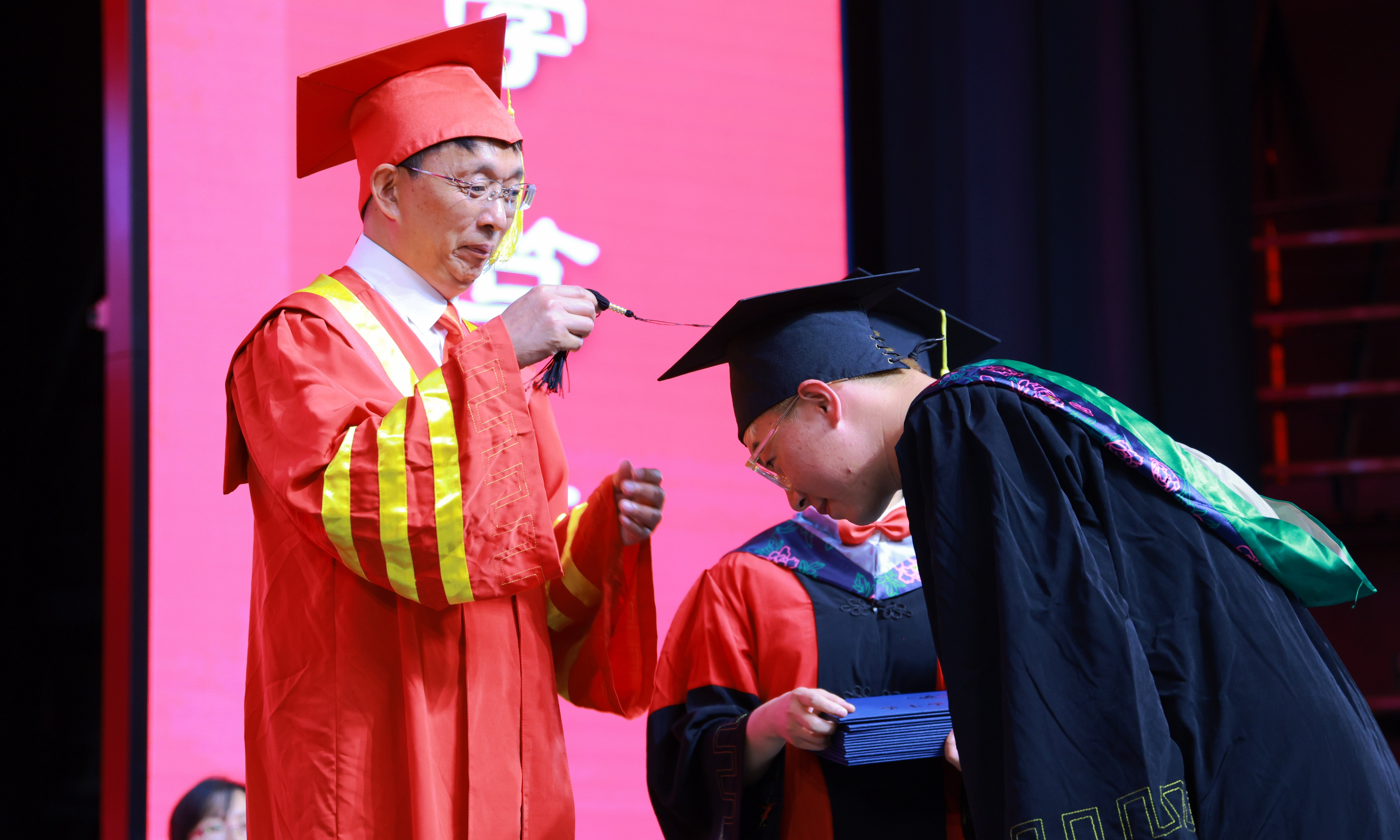 校长李启云为毕业生代表行拨穗礼、颁发学位证书