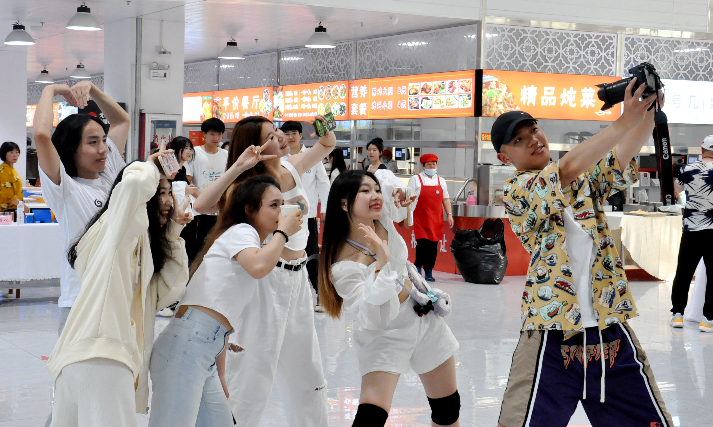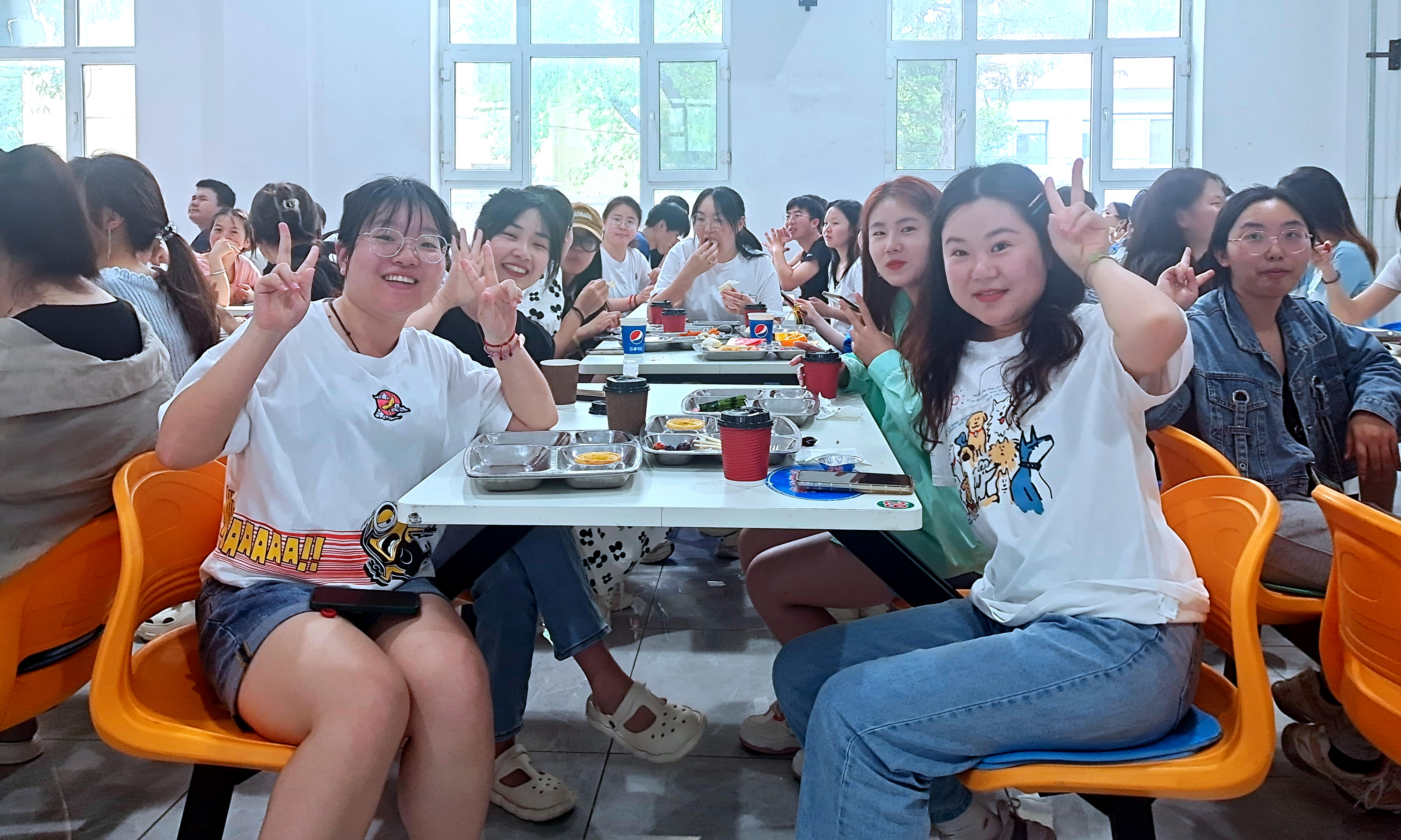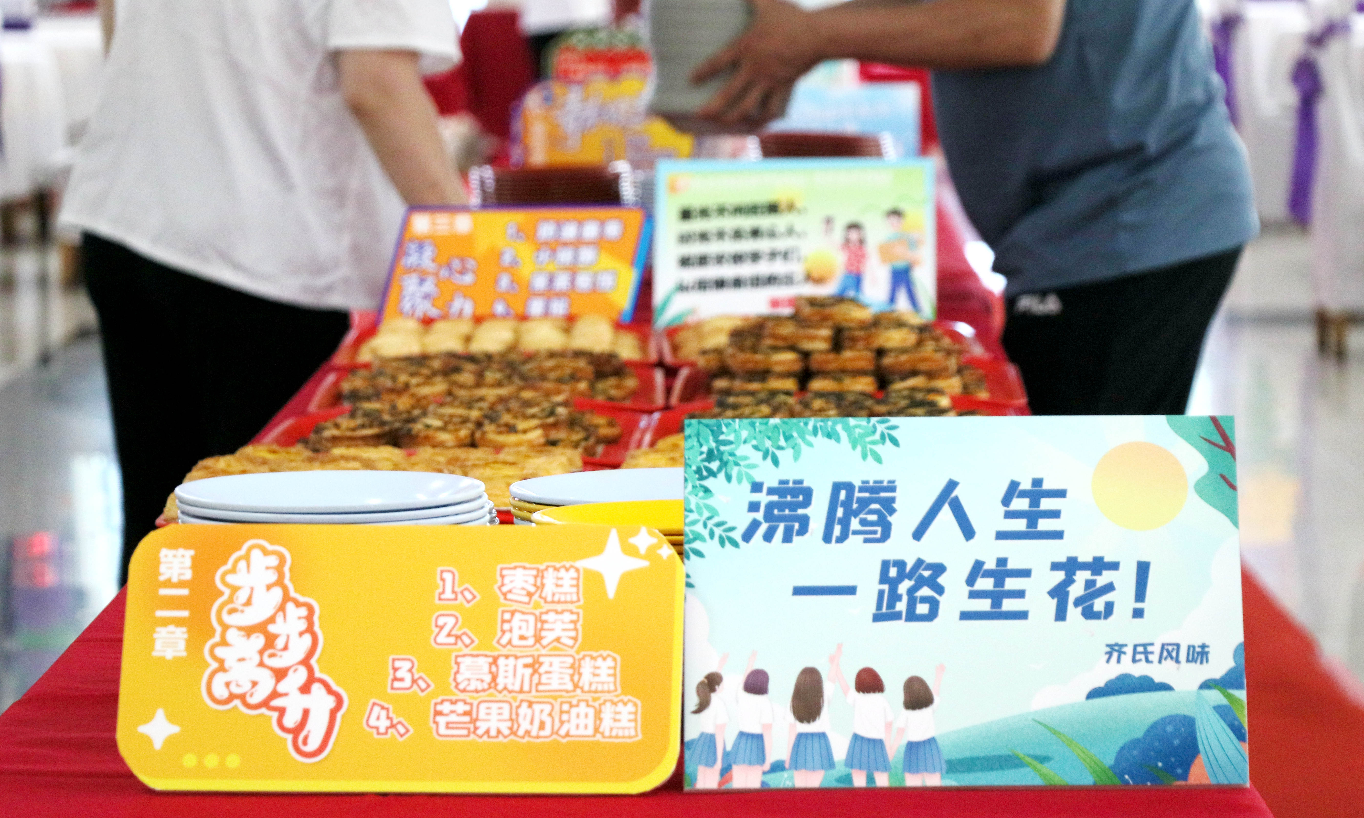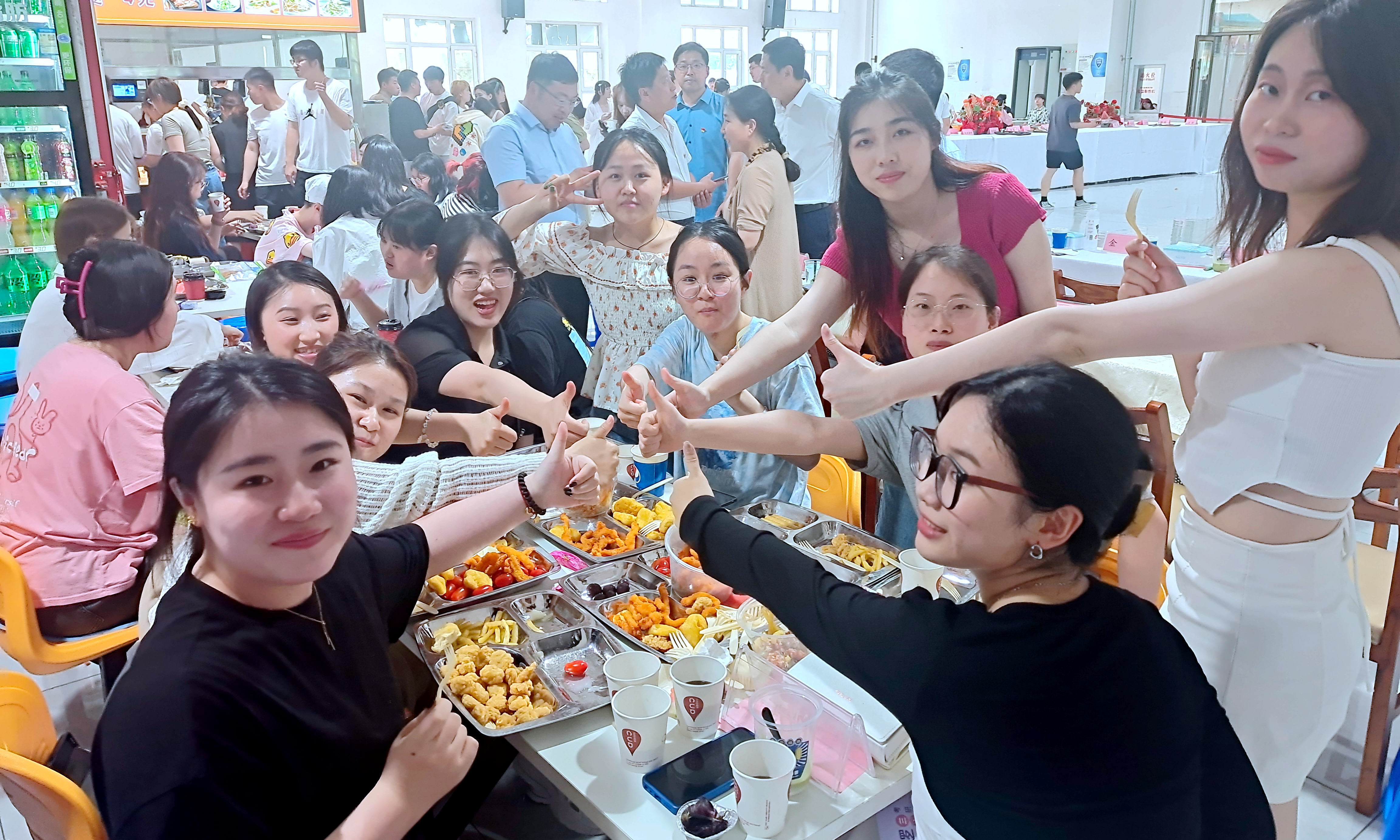 这场美食盛宴是饮食服务中心工作人员经过一个多星期的策划实施精心准备的。白色的桌套、闪亮的丝带、彩色的气球、写着温馨文案的标语牌营造了浪漫的氛围;精美的点心、酥脆的炸物、精致的食品雕刻作品、别具匠心的摆盘饱含着在校师生对毕业生的真挚感情。