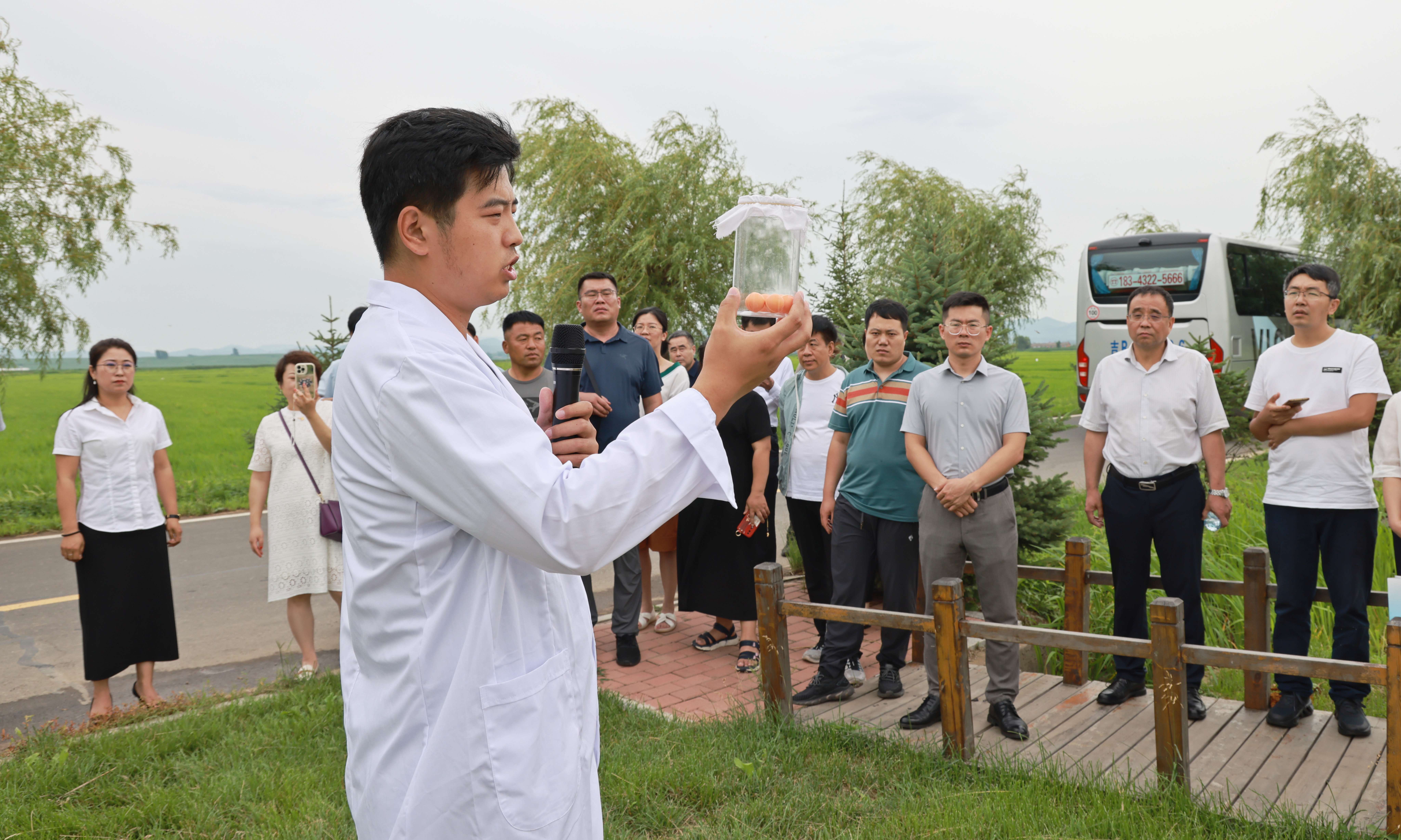 会上,“全国十佳农民”肖建波对农场规模、种植模式和经营方式进行了介绍,着重讲解了九月丰家庭农场开展耕读教育的基本情况。赫兵邀请参会嘉宾体验“强农有我”耕读教育实践活动,通过大米品鉴、赤眼蜂蜂球投放、稻田画观赏、稻田实验数据观测等活动引导参会嘉宾走进农村、走近农民、走向农业,感受现代农业产业化的发展变化。