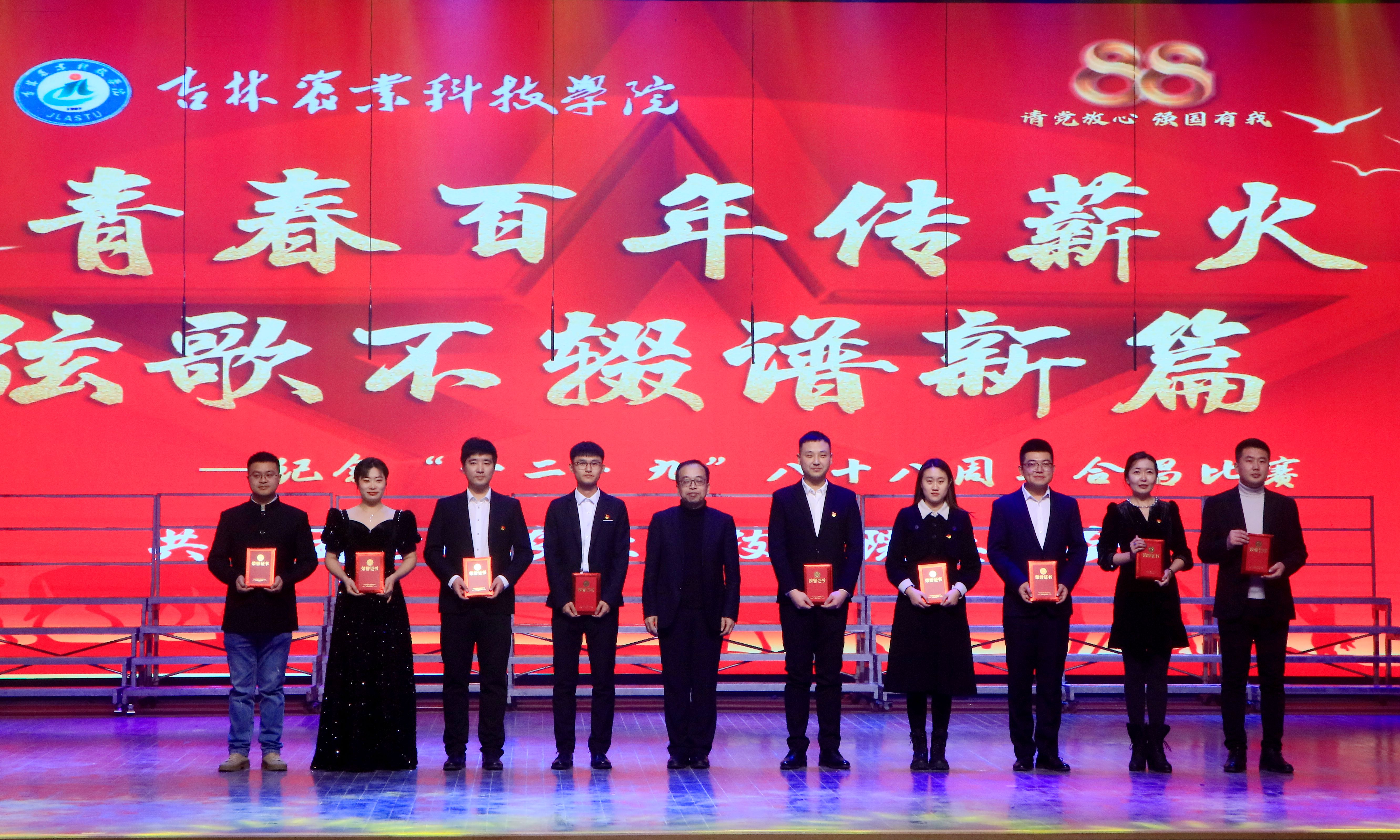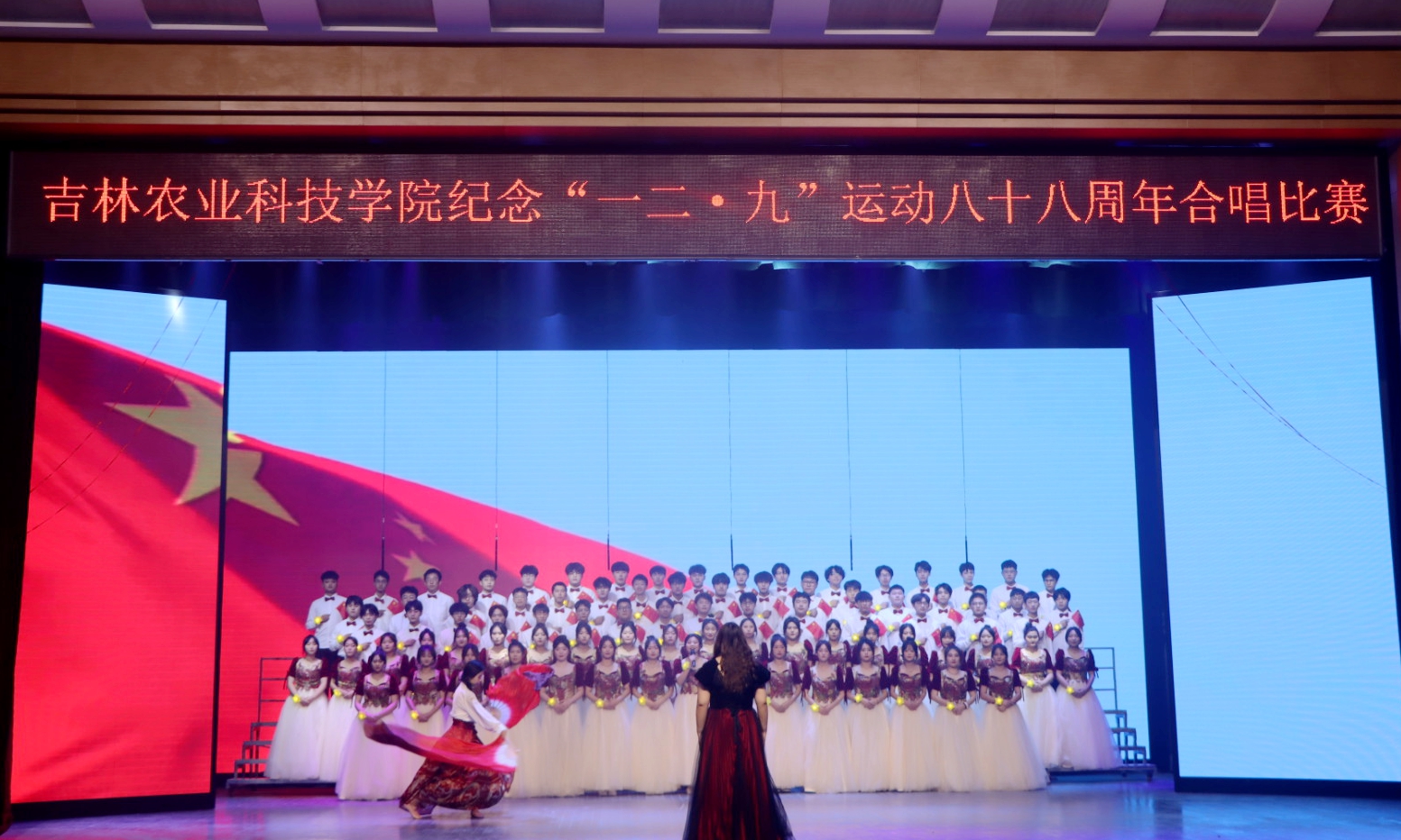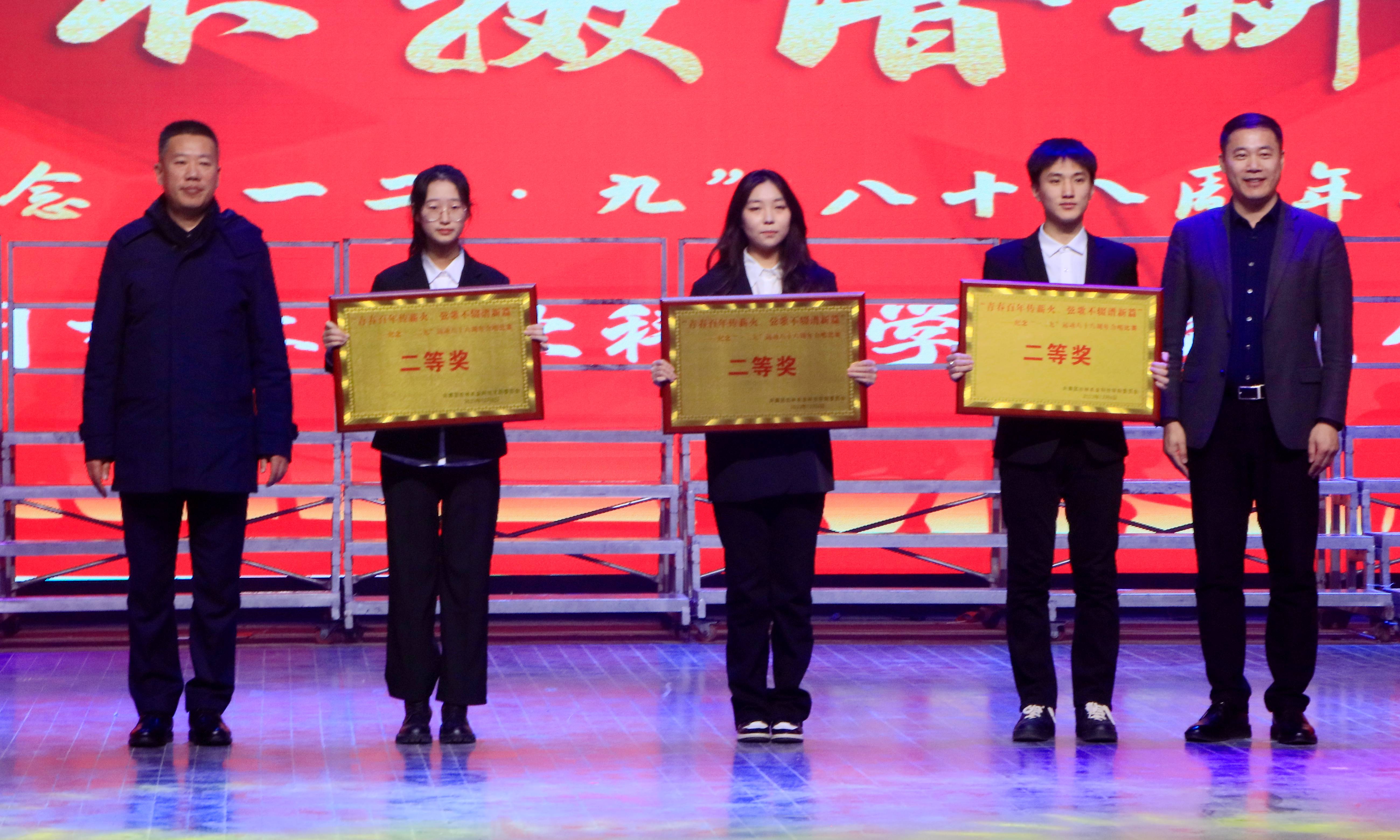 12月6日,学校举办了“青春百年传薪火,弦歌不辍谱新篇”为主题的纪念“一二·九”八十八周年合唱比赛。学校党委书记毛彦军、党委副书记王怀忠、校党委副书记金华、纪委书记白雪、副校长李国江出席本次活动。党委常委、宣传部部长沈宪文,招生就业处处长张大德,学生工作处处长王合峰,发展规划与政策法规处处长马辉,外国语学院副教授薛东慧共同担任本次合唱评委。