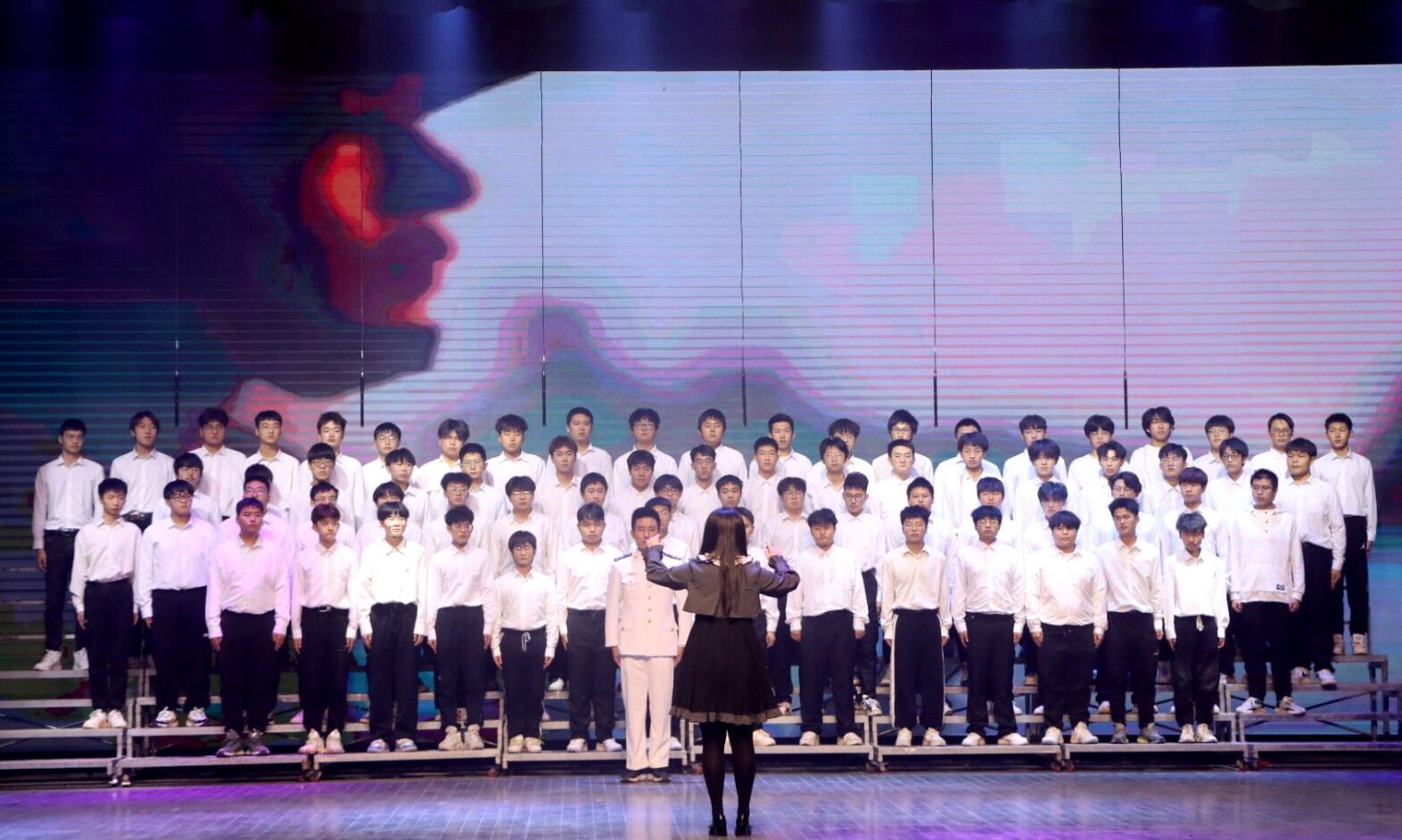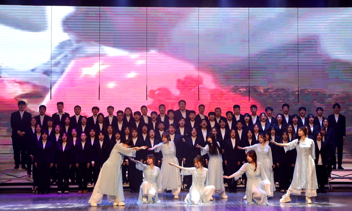 本次合唱比赛分为两个篇章:“寻先辈之‘光’”,追忆无数先辈建国立业的丰功伟绩;“燃青春之‘火’”,歌颂祖国繁荣富强、青年人挺膺担当的新时代。活动从开始训练到上台演唱,历时一个多月,同学们用美妙的歌声表达了对祖国的美好祝福,唱出了向革命先辈致敬的心声,用斗志昂扬的精神面貌喊出了青春的誓言“请党放心、强国有我”。