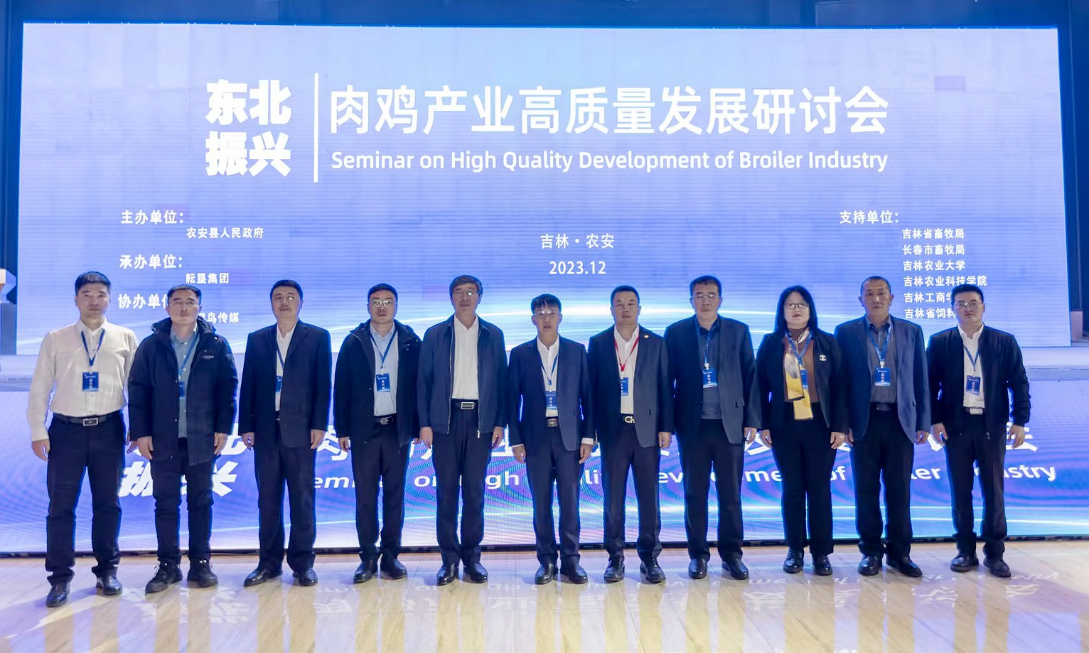 为贯彻落实教育部办公厅关于全国高校书记校长访企拓岗促就业专项行动工作部署,12月9日至10日,校长李启云、党委副书记王怀忠率领食品科学与营养工程学院相关负责人赴农安参加东北振兴——肉鸡产业高质量发展研讨会,并实地参观调研农安耘垦饲料有限公司。