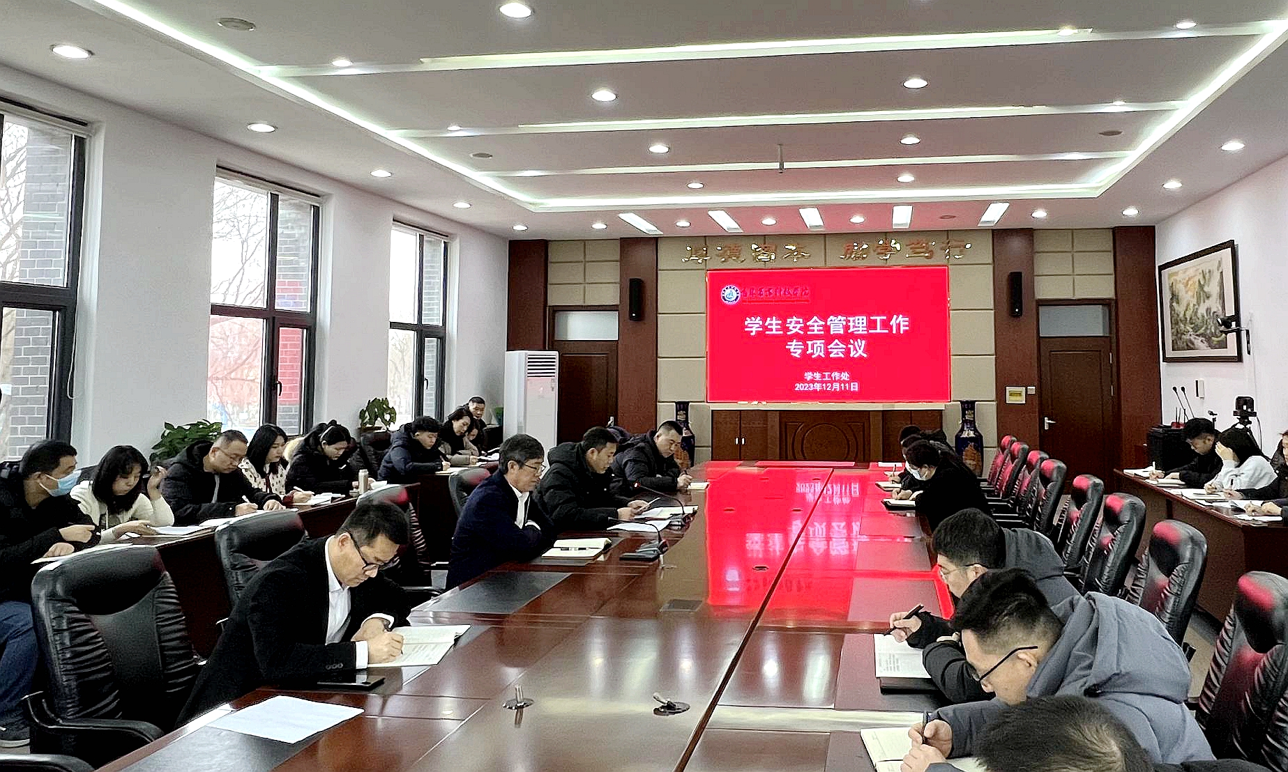 12月11日上午,学校在行政办公楼二楼会议室召开学生安全管理工作专项会议。党委副书记王怀忠出席会议并讲话,会议由学生工作处处长王合峰主持。