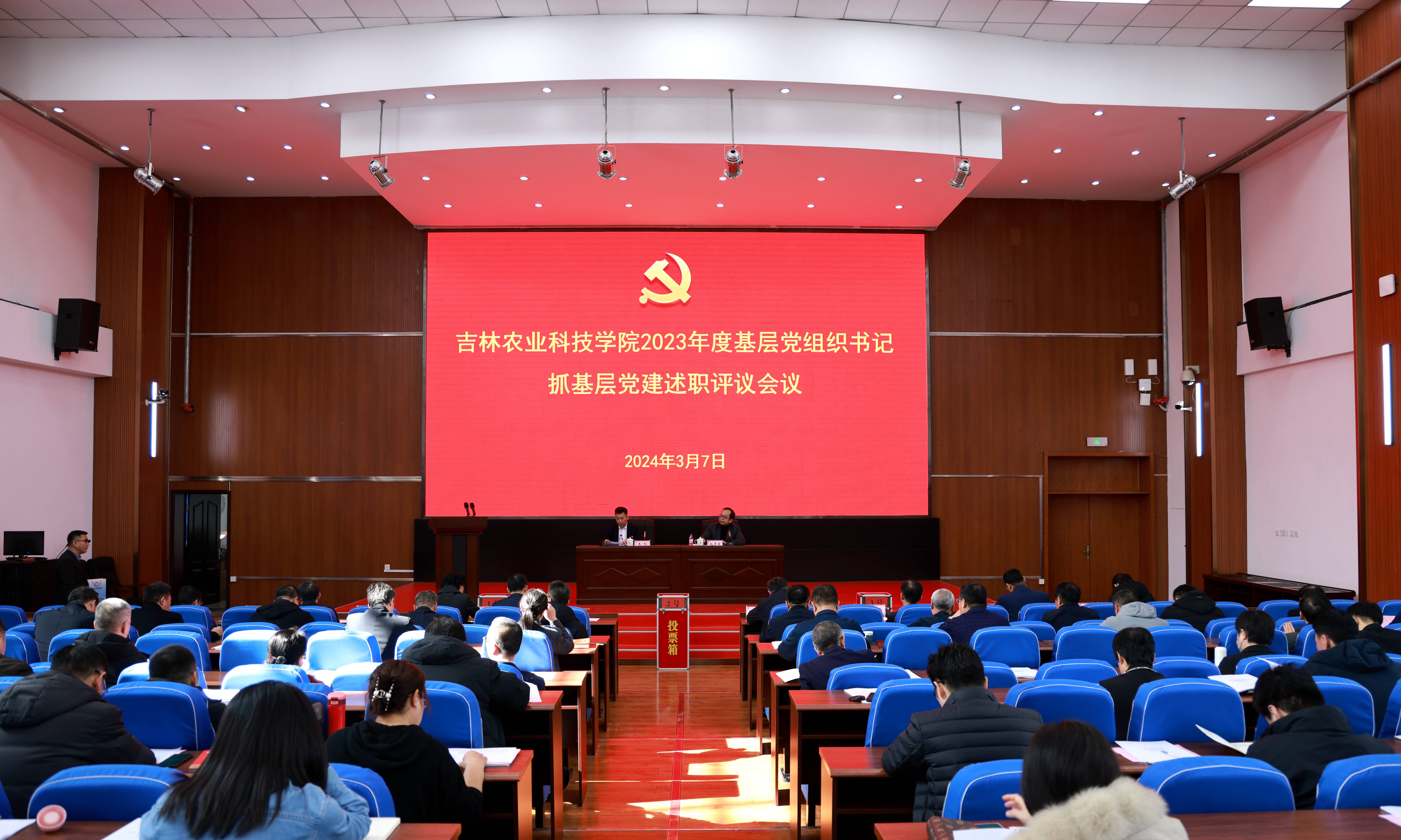 3月7日,吉林农业科技学院2023年度基层党组织书记抓基层党建工作述职评议会议在图书馆一楼报告厅召开。学校党委书记毛彦军主持会议并讲话,省委教育工委统战部三级调研员王刚到会指导。