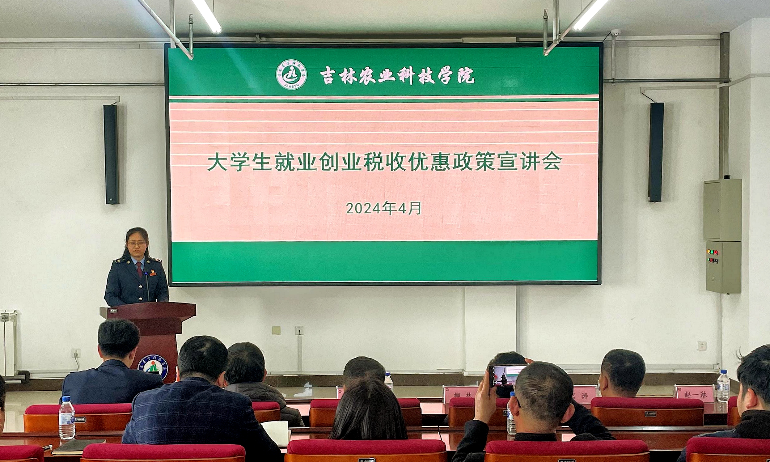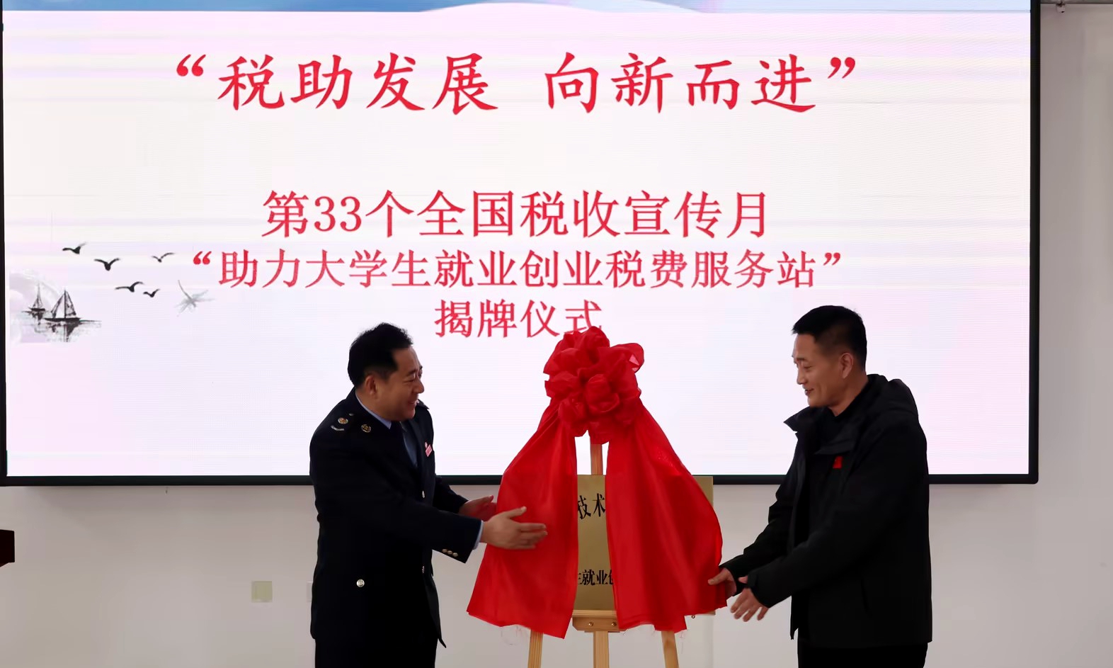 活动中,吉林经济技术开发区税务局副局长柳林与招生就业处副处长宫涛共同为学校助力大学生就业创业税费服务站揭牌。经开区纳税服务中心主任赵一淋以《税助发展 向新而进》为题,围绕大学生就业创业税费优惠政策进行宣讲,并针对师生提出的问题进行现场解答。会后,双方与会领导针对大学生就业创业税费服务站相关活动做了进一步安排部署。