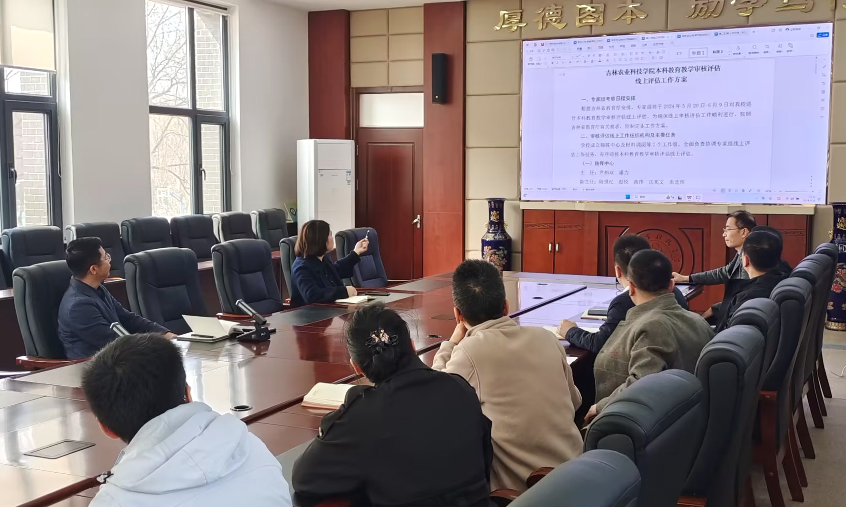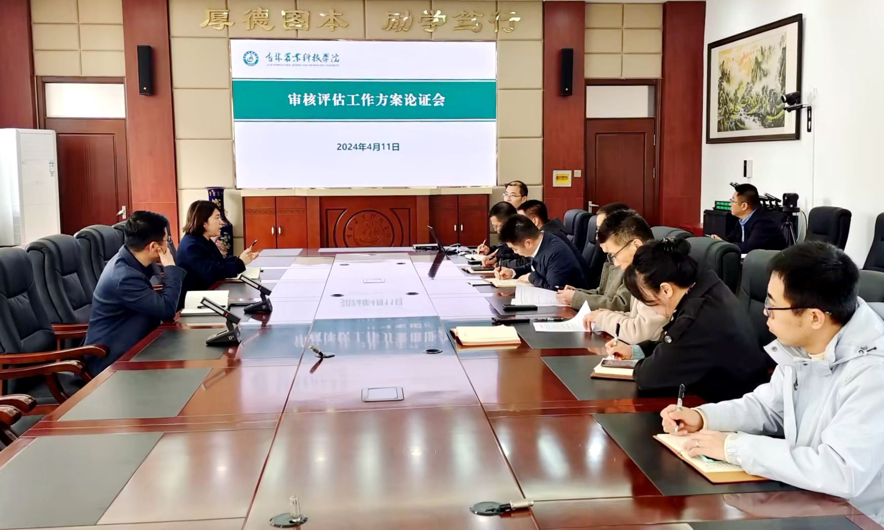 4月11日,学校召开审核评估工作方案论证会,就如何顺利推进本科教育教学审核评估线上评估工作展开研讨。审核评估各工作组组长及相关职能部门负责人参加会议。副校长尹柏双主持会议。