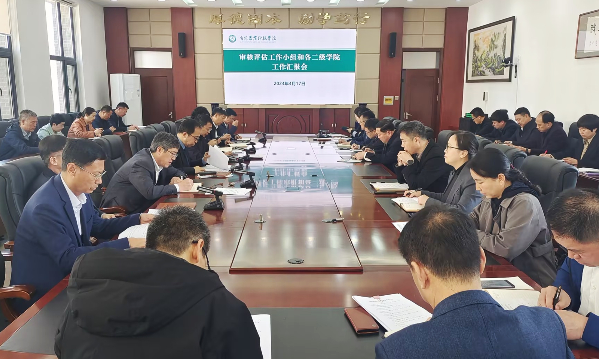 为扎实推进和高效落实本科教育教学审核评估工作任务,4月17日上午,学校召开审核评估工作小组和各二级学院工作汇报会。学校领导、审核评估工作领导小组成员及各工作组组长出席会议,各工作组副组长、各二级学院院长参加会议。会议由校长李启云主持。