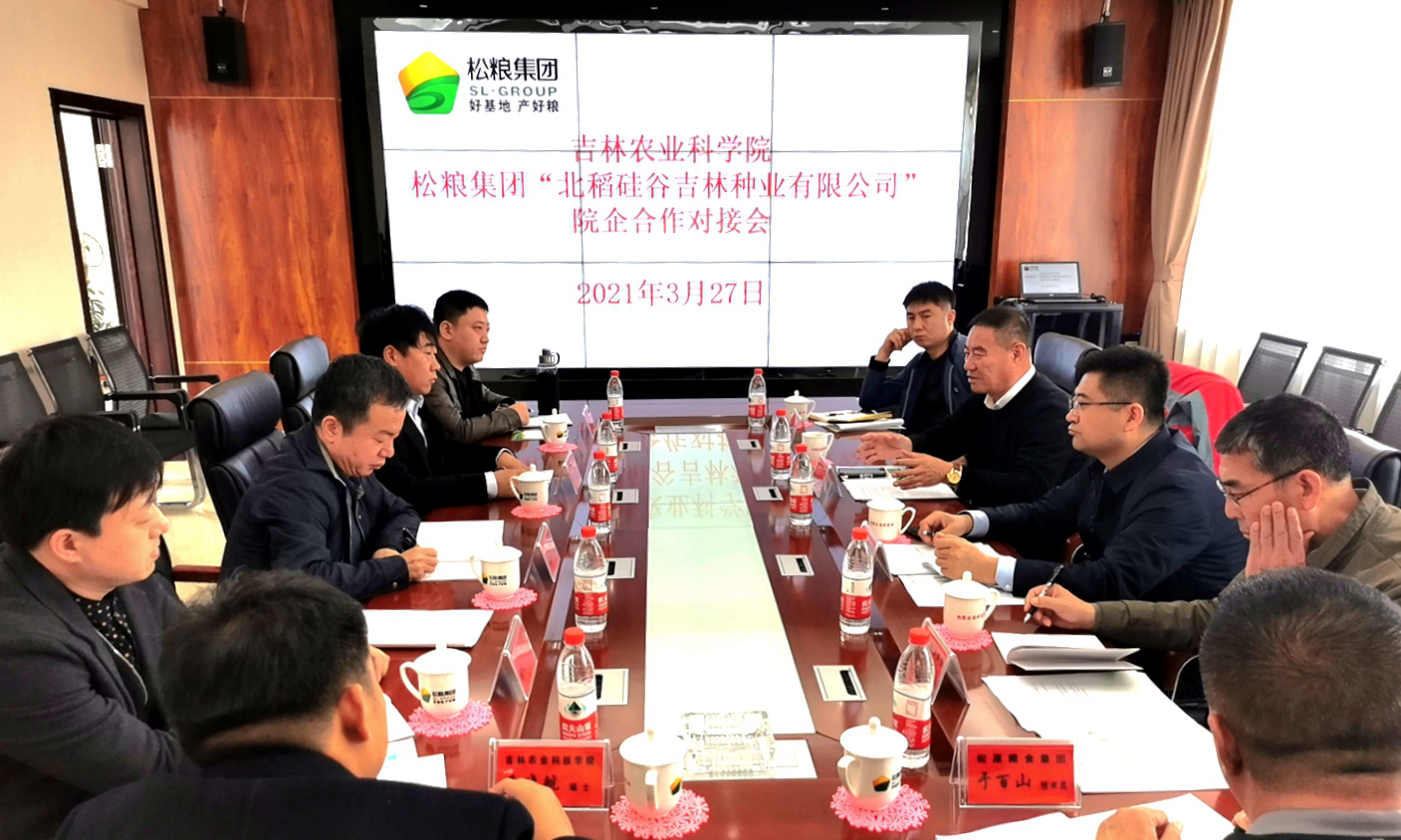 3月27日上午,我校作物学科首席陈殿元教授与学科水稻育种、栽培团队杨祥波博士、张振宇博士、赫兵博士、王晓航硕士一行到松粮集团北稻硅谷吉林种业有限公司洽谈博士工作站等合作事宜。松粮集团副总经理徐交宇,水稻所所长李东明、副所长王建民,技术员胡文琦负责对接工作。