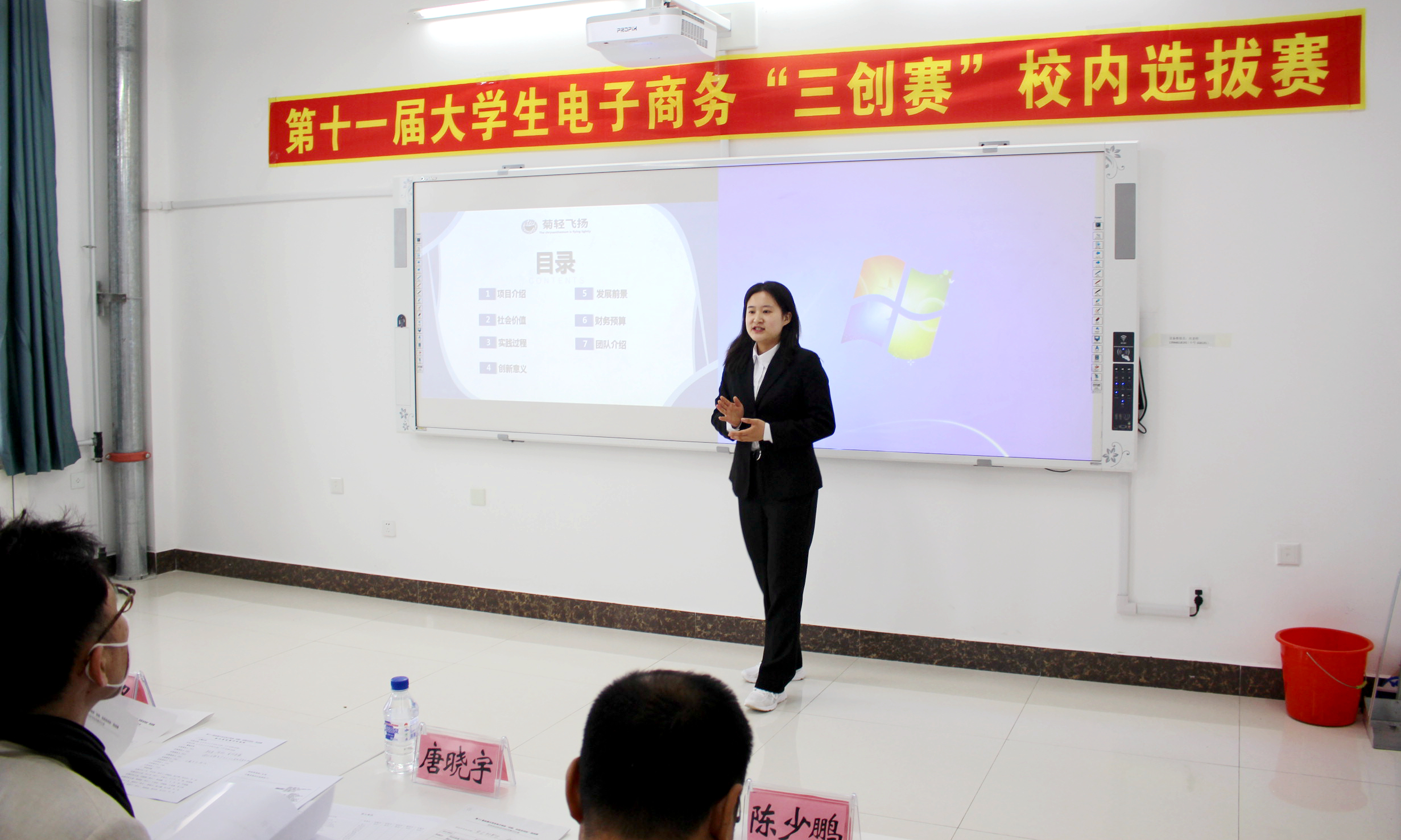 上午8:00,大赛主要负责人张大庆向评委老师详细讲解了评审细则并组织评委老师签署评审承诺书。上午8:30,大赛正式拉开帷幕,各参赛团队按照路演顺序逐一展示项目创意及运营规划,并认真回答评委的发问,“盆蔬森林”、“治虫联盟”、“校内乾坤”等32个参赛项目以独特的创意和充分的准备得到了评委老师的高度肯定,成功晋级25日的校级总决赛。