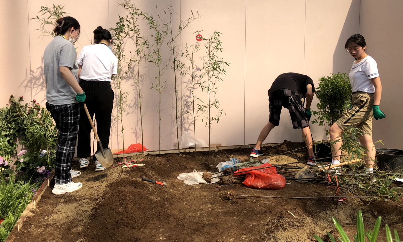 作品入围后,同学们展开了紧张的练习,以求最好的状态迎接竞赛。施工阶段,在老师的指导帮助下,同学们场内协作,场外运输,配合到位,以较高的质量完成了作品的施工,最终斩获铜奖。