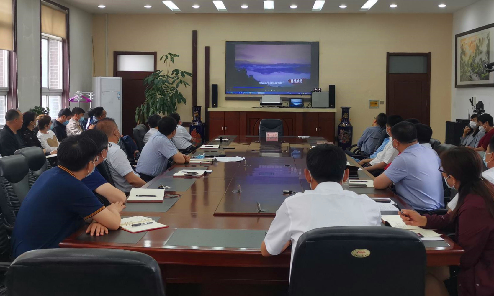 党史学习教育读书班结业式上,观看了《百炼成钢》五个短视频,李凤林、马辉、李立功分别交流了读书班学习体会。
