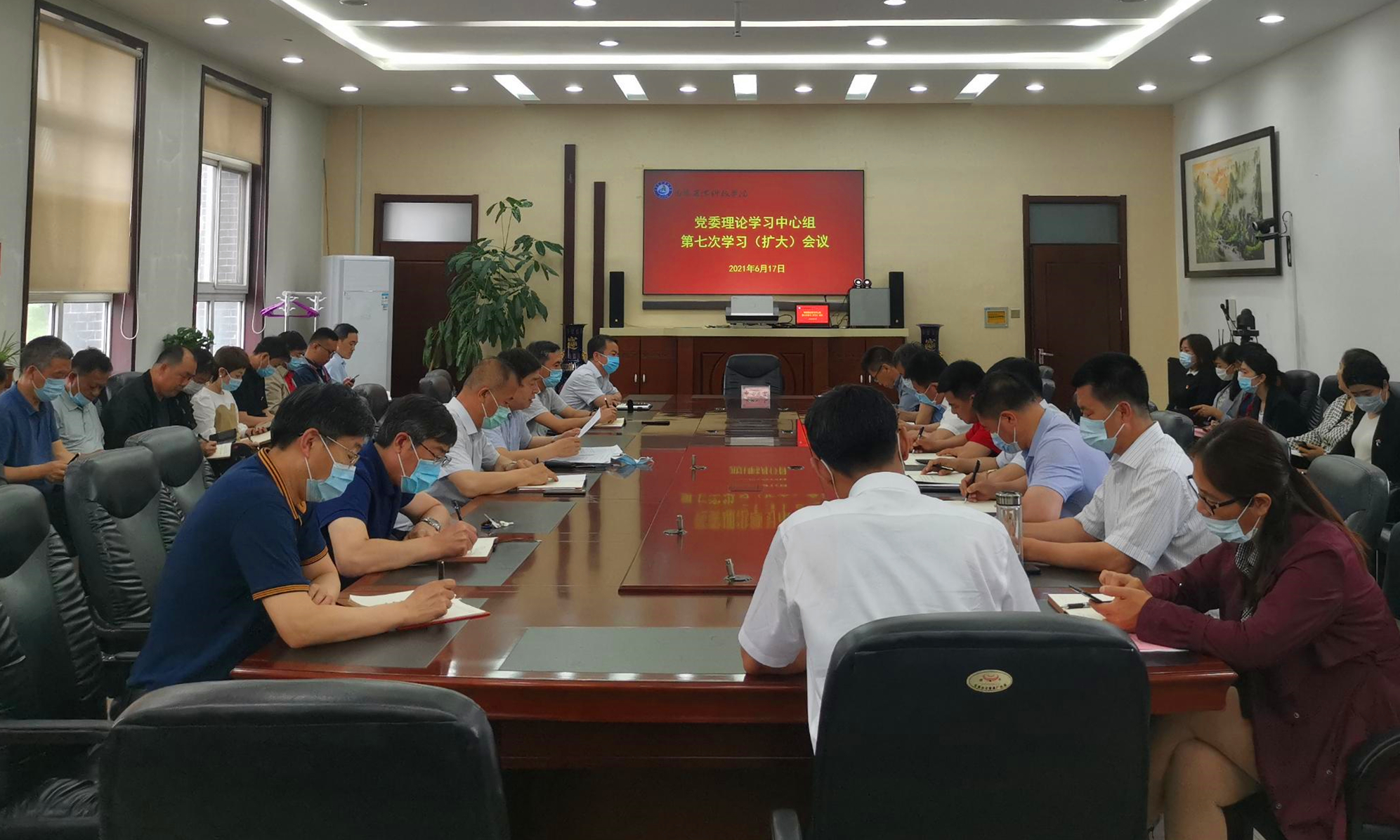 6月17日下午,我校召开第七次党委理论学习中心组学习(扩大)会议暨党史学习教育读书班结业式。学校党委委员、各单位党政负责人参加学习会议。会议由学校党委书记张立峰主持。
