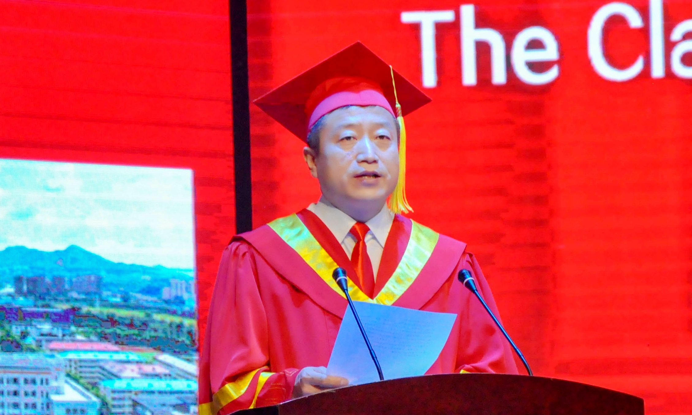 校长谢景武代表学校向全体毕业生致以最热烈的祝贺。谢景武说,在农院求学的时光里,广大毕业生和祖国同行、与学校共进,见证了党的十九大胜利召开,目睹了新中国成立70周年盛况,亲历了脱贫攻坚的全面胜利和全面建成小康社会的梦想成真,经历了新冠肺炎疫情的考验,迎来了“十四五”规划的开局之年,承载着光荣的时代使命。希望广大毕业生始终牢记“厚德图本、励学笃行”的校训,厚植家国情怀,永葆乘风破浪的昂扬姿态,以农院人的担当致敬新时代。