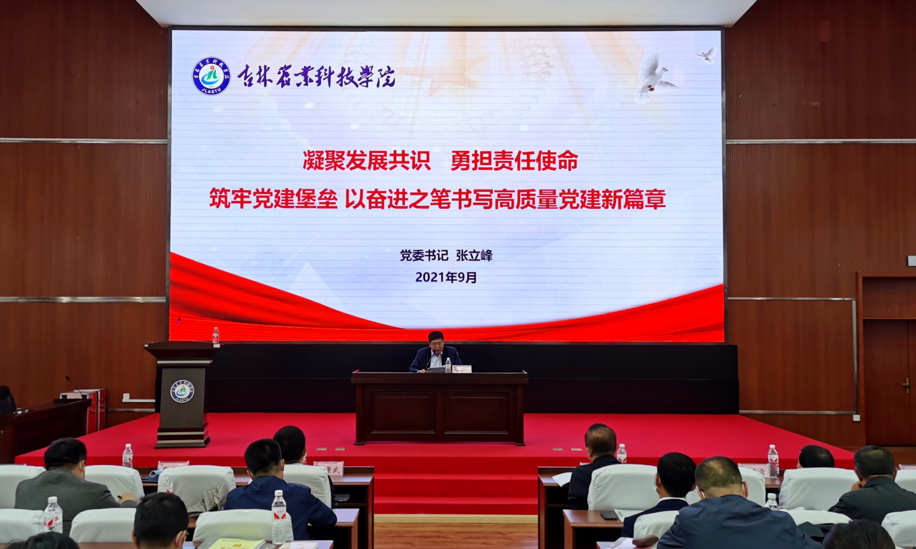 党委书记张立峰作动员部署讲话。张立峰指出,会议要认真贯彻落实吉林省委和省教育工委关于省属高校换届工作会议精神和具体换届要求,部署学校第三次党委换届工作,动员全校党员领导干部统一思想、明确任务、落实责任,圆满完成学校党委换届选举工作各项任务,为推动学校各项事业高质量发展奠定坚实的组织基础。