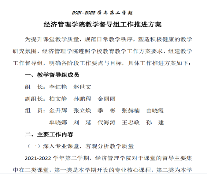 经济管理学院教学督导组工作推进方案