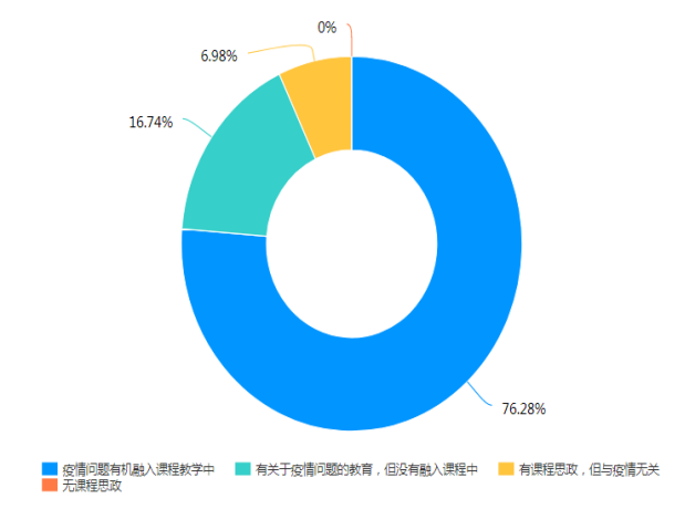 2.教师全部进行课程思政,且有93.02%的教师结合学校最新情况进行课程思政,鼓励学生,对学生进行心理疏导。
