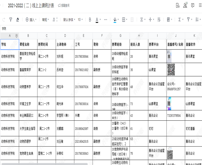 动物科技学院线上上课统计表