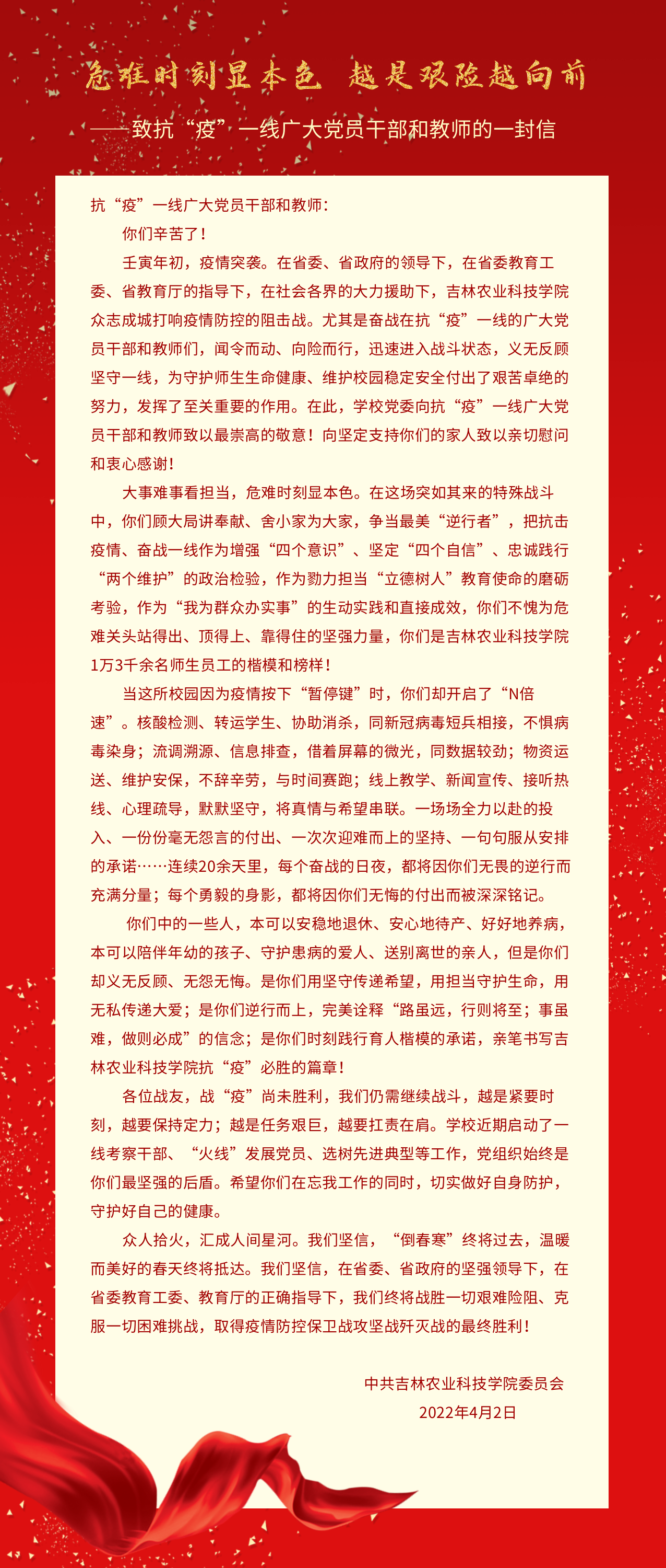 危难时刻显本色 越是艰险越向前——致抗“疫”一线广大党员干部和教师的一封信