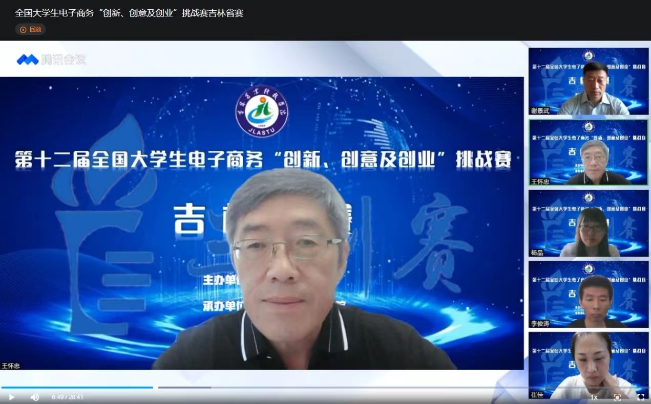 第十二届全国大学生电子商务“创新、创意及创业”挑战赛吉林省赛于2022年6月11日在吉林农业科技学院举行,本次竞赛采用线上方式进行。开幕式由吉林农业科技学院党委副书记王怀忠主持,吉林农业科技学院校长谢景武致开幕词。