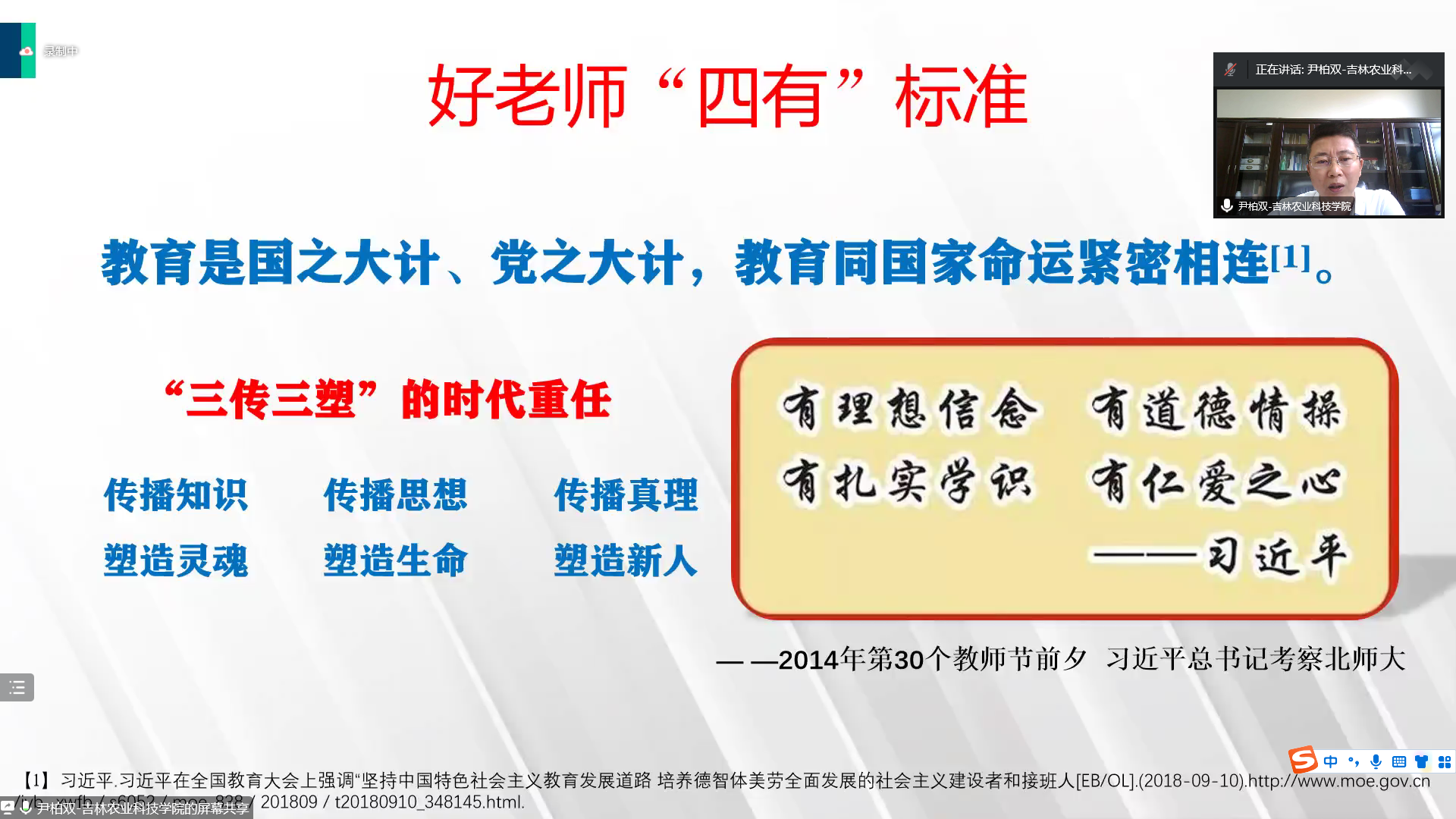 尹柏双通过“学高为师、身正为范”的教师追求,“立德树人”的教育根本任务,做“四有好老师”的教育要求以及“为党育人、为国育才”的根本使命诠释了“为什么要成为一名优秀的大学教师”。通过“怎样才能成为一名优秀的大学教师”的讲解为全体新入职教师提出了宝贵建议。尹柏双强调,一名优秀的大学教师应该具有坚定的理想信念、高尚的道德情操、深厚的扎实学识和崇高的仁爱之心,做到以心育心、以德育德、以人格育人格。要不断增强专业功底,提升个人教学能力,创新科学教学模式。站上讲台前认真备课,站稳讲台合理组织课堂教学,走下讲台做好课后评价和教学反思。