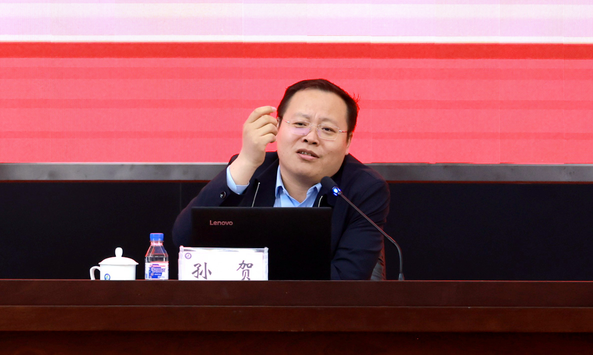孙贺教授围绕习近平新时代中国特色社会主义思想,阐述了坚持把马克思主义基本原理同中国具体实际相结合、同中华优秀传统文化相结合这一重要思想的丰富内涵,着重分析了马克思主义中国化时代化新的飞跃的科学理论,从历史逻辑、理论基础等方面分析了“两个确立”的决定性意义。孙贺教授的报告站位高远、内涵丰富、思想深刻,为全体党员干部进一步学习贯彻落实习近平新时代中国特色社会主义思想、开展好主题教育提供了重要的参考和借鉴。