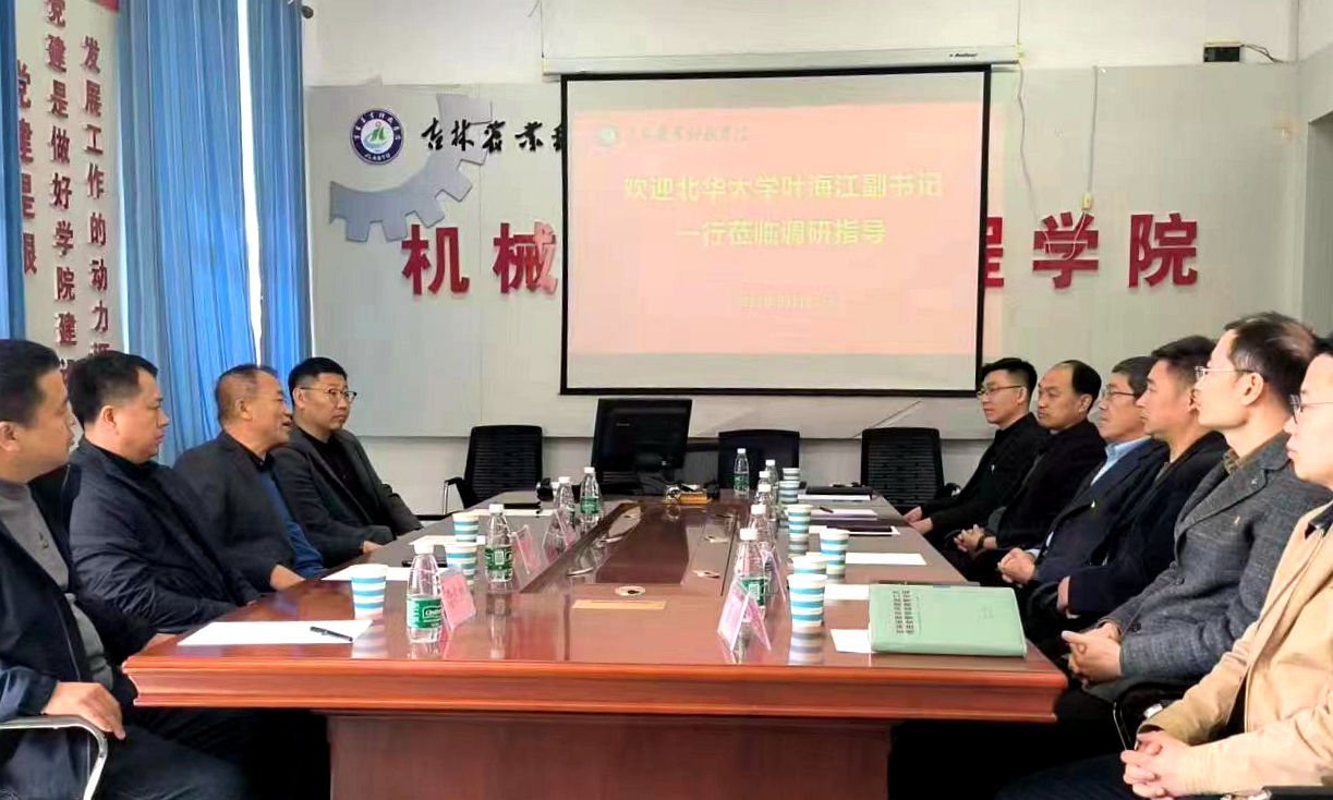 4月27日上午,北华大学党委副书记叶海江及机械工程学院党委书记陈驰、党委副书记李响、副院长李洪洲一行到我校机械与土木工程学院调研交流。学校党委副书记王怀忠与机械与土木工程学院党总支书记栾松久、院长明哲、副书记姚楠、副院长胡宇祥、副院长崔博参加了座谈。