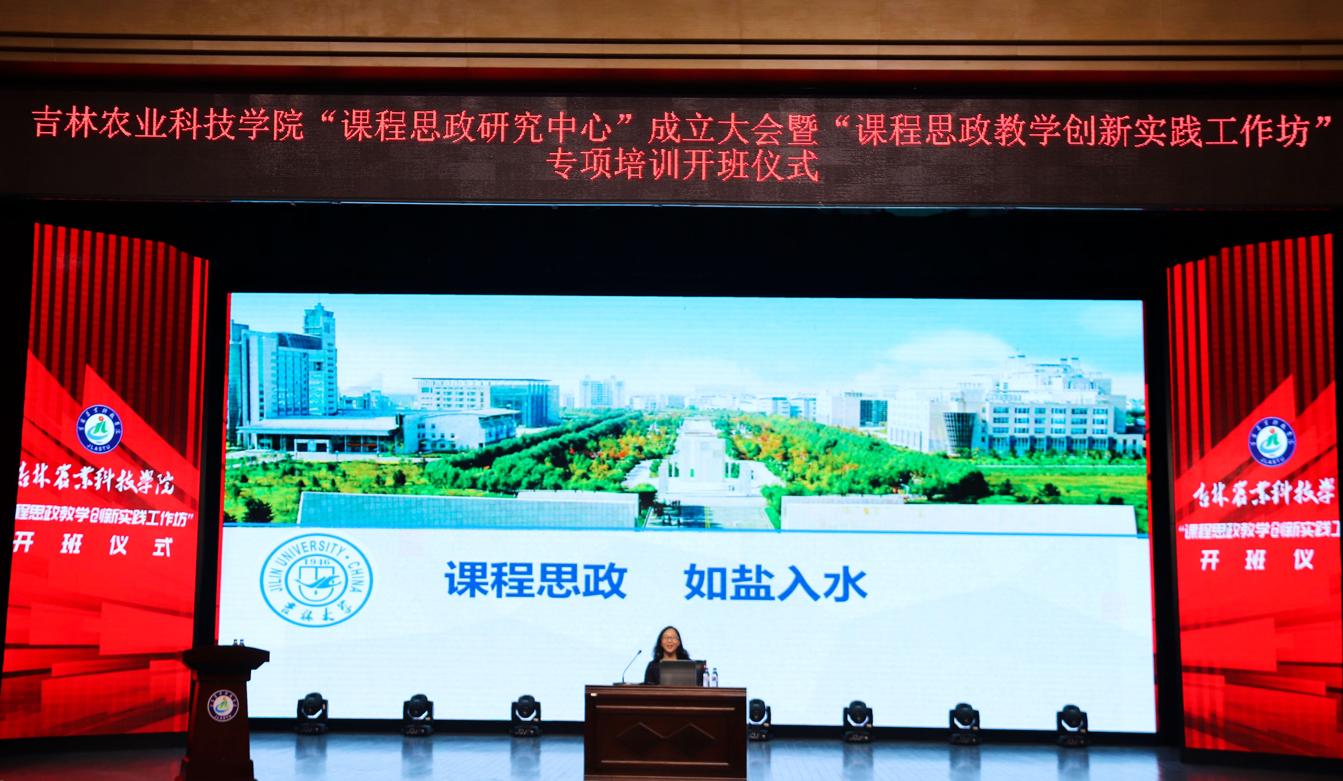 为深入学习贯彻党的二十大精神,贯彻落实习近平总书记关于“大思政课”的重要论述精神,全面推进课程思政建设,提高人才培养质量,我校于5月10日下午在大学生活动中心举行吉林农业科技学院“课程思政研究中心”成立大会暨“课程思政教学创新实践工作坊”专项培训开班仪式。校长李启云、党委副书记王怀忠、党委副书记金华出席仪式。大会由副校长尹柏双主持。