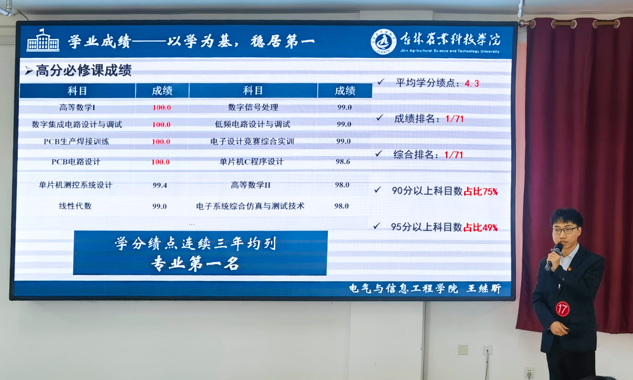学校首届校长奖学金的评审工作按照《吉林农业科技学院校长奖学金评选办法》要求,坚持以公平、公正、公开的原则,严格按照评选条件和评选程序执行。汇报会上,来自9个学院的18名入围同学按抽签顺序依次演讲,通过学业成绩、科技竞赛、社会实践、所获荣誉以及思想感悟等方面进行汇报,他们用行动向我们诠释了什么是“少年自有凌云志,不负黄河万古流”,充分体现了农院学子踔厉奋发、笃行不怠的精神面貌。