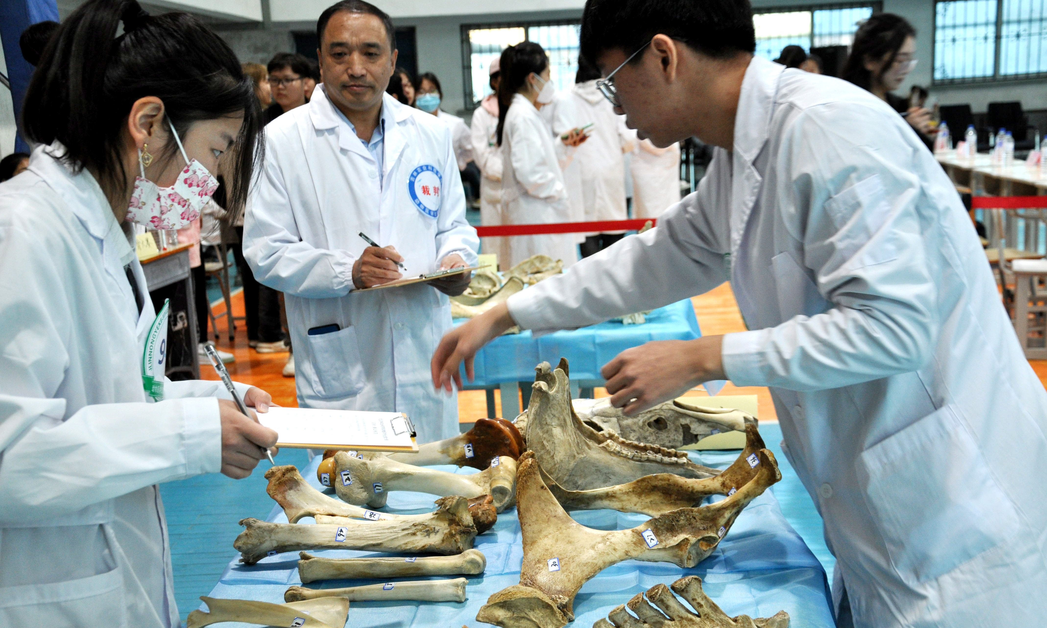 大赛共有来自学院的29支代表队145名同学报名参加,20余名专业教师担任赛事裁判并全程指导。大赛分为“理论知识竞答”“动物骨骼识别”“细菌染色观察”“徒手打结”四个项目。比赛过程按照全国大赛技术规范流程进行。赛场上,各参赛队伍分工明确、各司其职,有条不紊地开展实验操作。相互间配合默契,操作干净利落,细菌染色操作规范,打结漂亮的手法和知识竞答热烈的场面赢得场边观众的阵阵赞叹。经过激烈的角逐,来自动物医学专业的3支参赛队伍脱颖而出,获得一等奖。