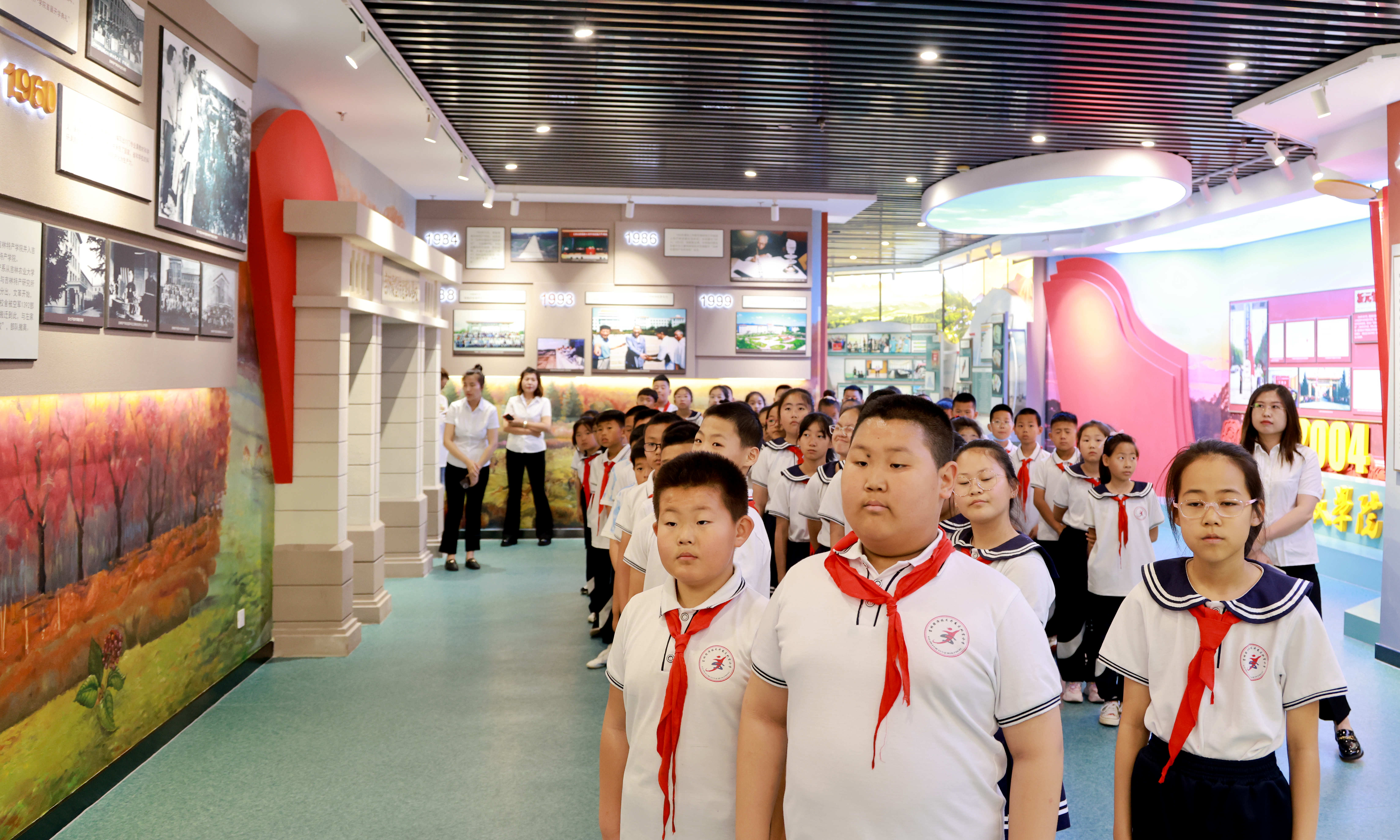 支部全体党员、学校志愿者带领小朋友们参观了学校的图书馆、校史馆,带领他们感受大学学习生活环境。在国家级科普教育基地——动植物标本馆,小朋友们在讲解员的带领下参观了蝴蝶标本、长白山植物、珍稀动物、古生物化石等展厅。小朋友们对栩栩如生的动植物标本产生了浓厚的兴趣,每位小朋友脸上都写满了对知识的渴望。在大学生实践基地,小朋友们参观了葡萄、黄桃大棚,近距离观察植物生长过程。在水利与土木实训大厅,小朋友们参观了五级水利枢纽模型,了解水利枢纽发电、灌溉、航运、防洪及排洪过程。