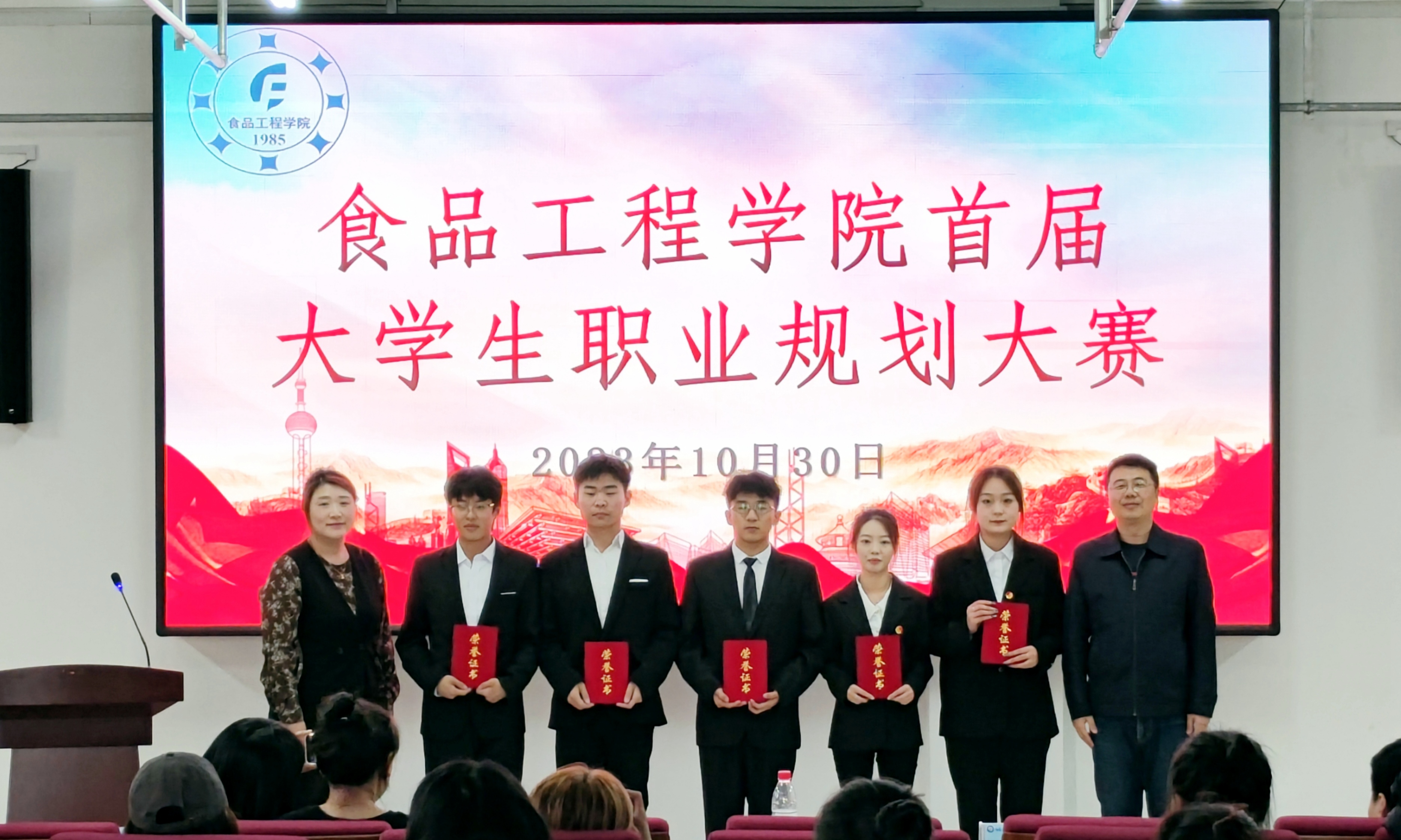 10月30日下午,食品工程学院举办首届大学生职业规划大赛,学院党总支副书记吕闻明、副院长刘艳霞、招生就业处就业指导教研室主任张婧、学院团委书记谢天、学院辅导员刘文超、学院辅导员王丽娜、学院辅导员李程受邀担任评委。