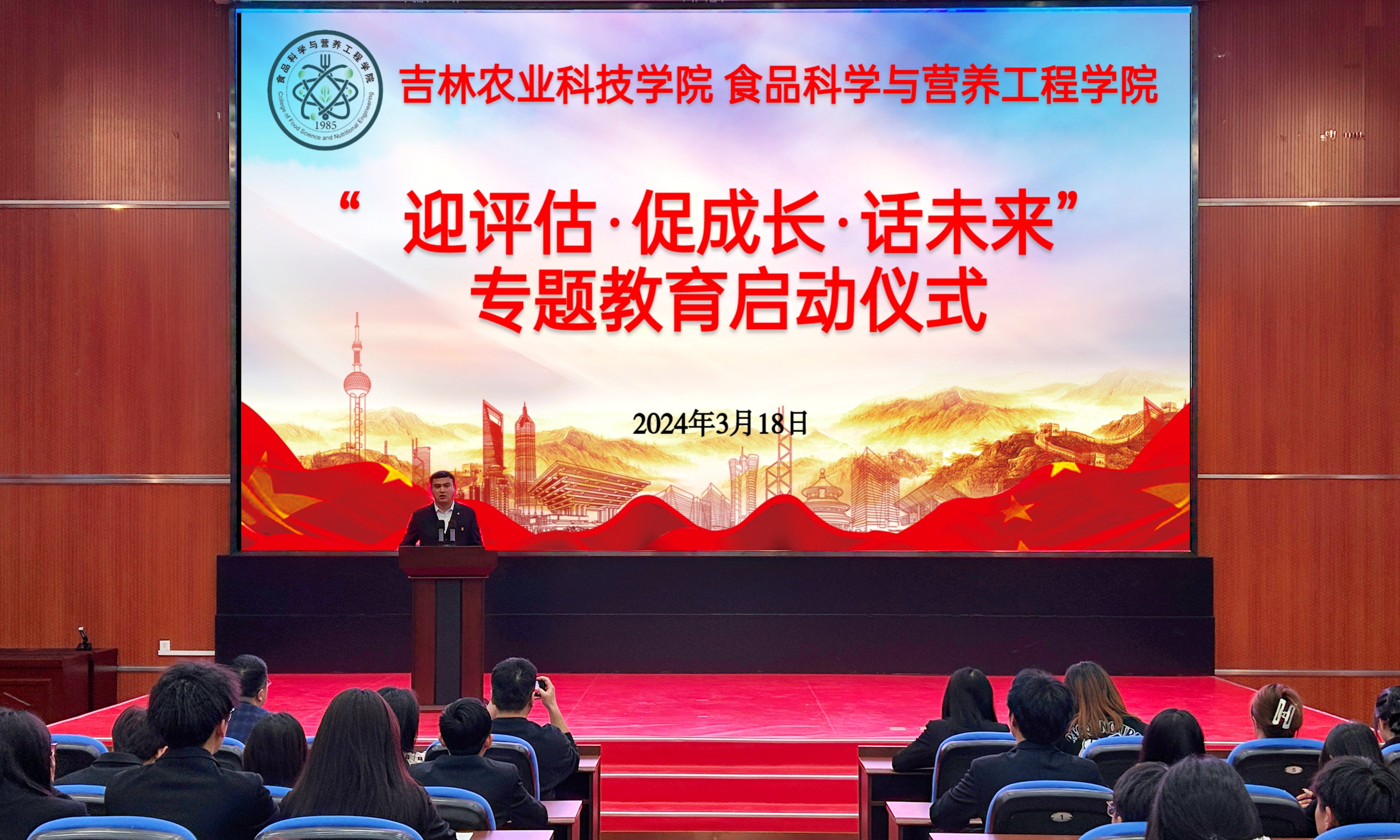 3月18日晚,食品科学与营养工程学院举行“迎评估,促成长,话未来”专题教育启动仪式暨审核评估学生培训会。食品科学与营养工程学院党总支副书记吕闻明主持会议。学院全体学生干部参与本次活动。