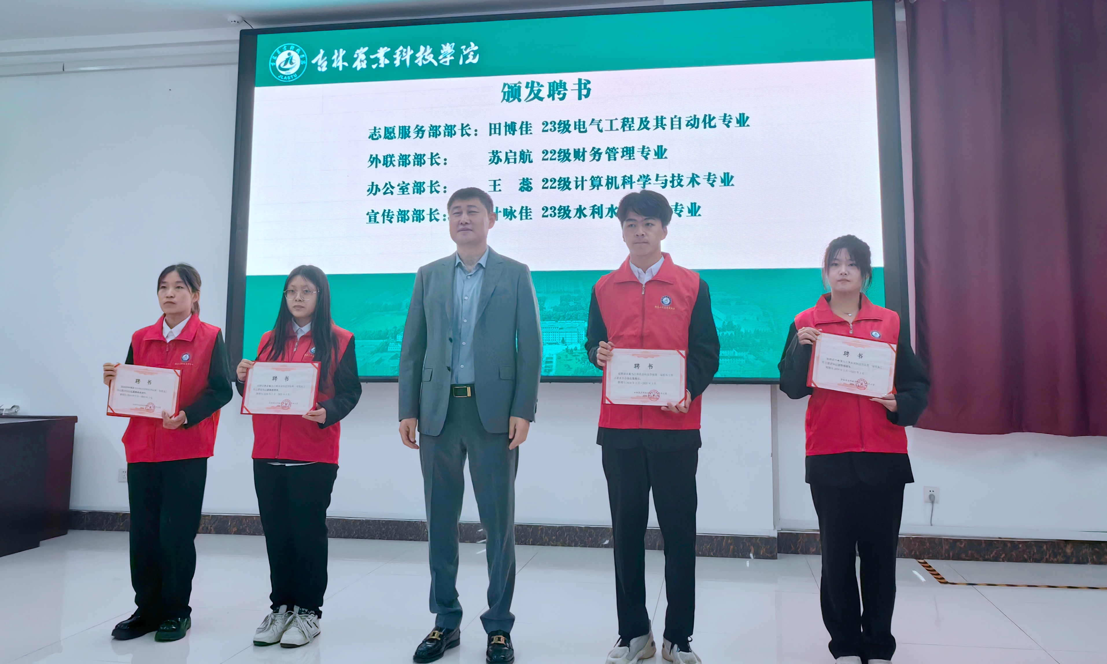 4月25日,学校召开校友工作志愿者协会成立大会。学校团委书记刘有良,乡村振兴培训中心、校友工作办公室副主任刘启锋,校友联络科科长、协会指导教师李成与协会全体成员共同参加活动。
