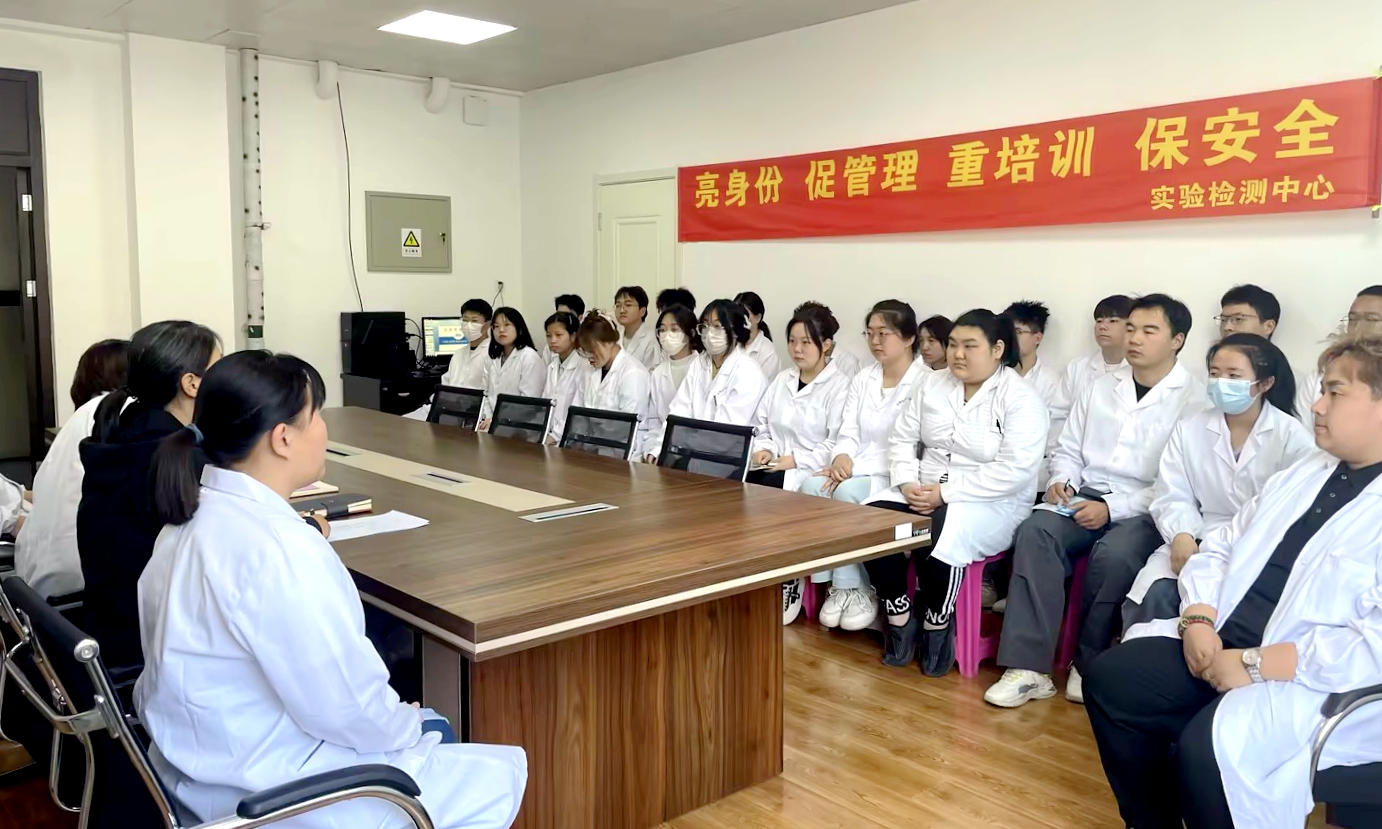 为进一步加强实验检测中心安全管理,5月8日下午,实验检测中心举行“亮身份、促管理、重培训、保安全”主题活动。活动对23位近期在中心进行毕业论文设计、大学生创新、科研和检测技术能力提升的学生进行了专题培训及考核,包括消防安全、水电安全、试剂配制和仪器设备使用等内容。中心副主任张辉强调了实验室安全的重要性和本次活动的目的,要求指导教师要严谨、科学、细致地开展培训,希望同学们认真听、用心记、多思考。
