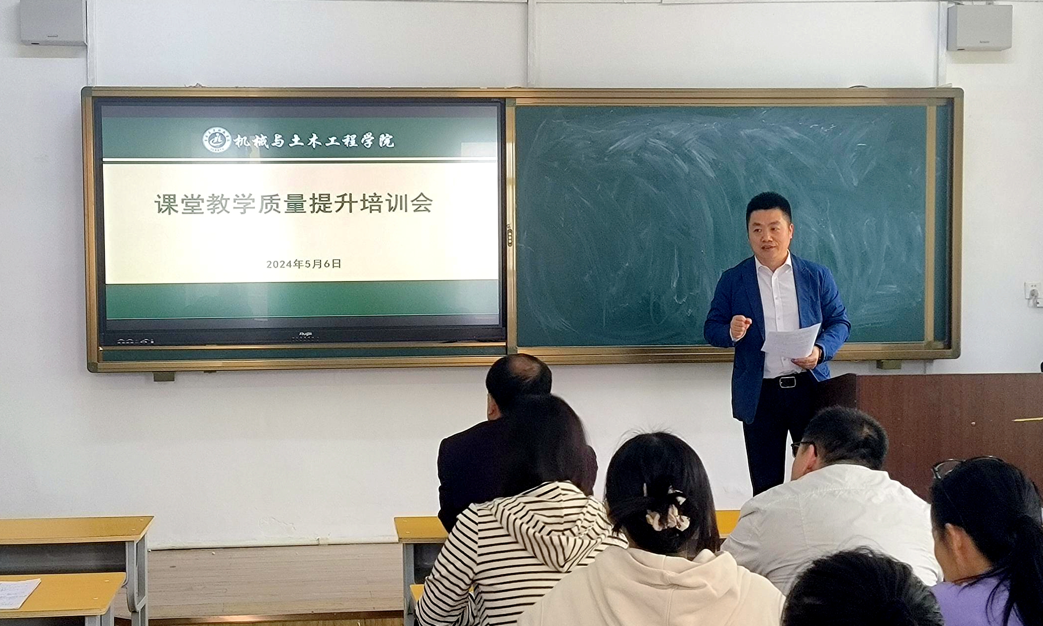 5月6日,机械与土木工程学院召开教学质量提升交流与培训会议,活动邀请教务处副处长靳敏平作专题培训,并由学院教师武琳作示范教学。学院全体教师参加活动,学院副院长殷飞主持活动。