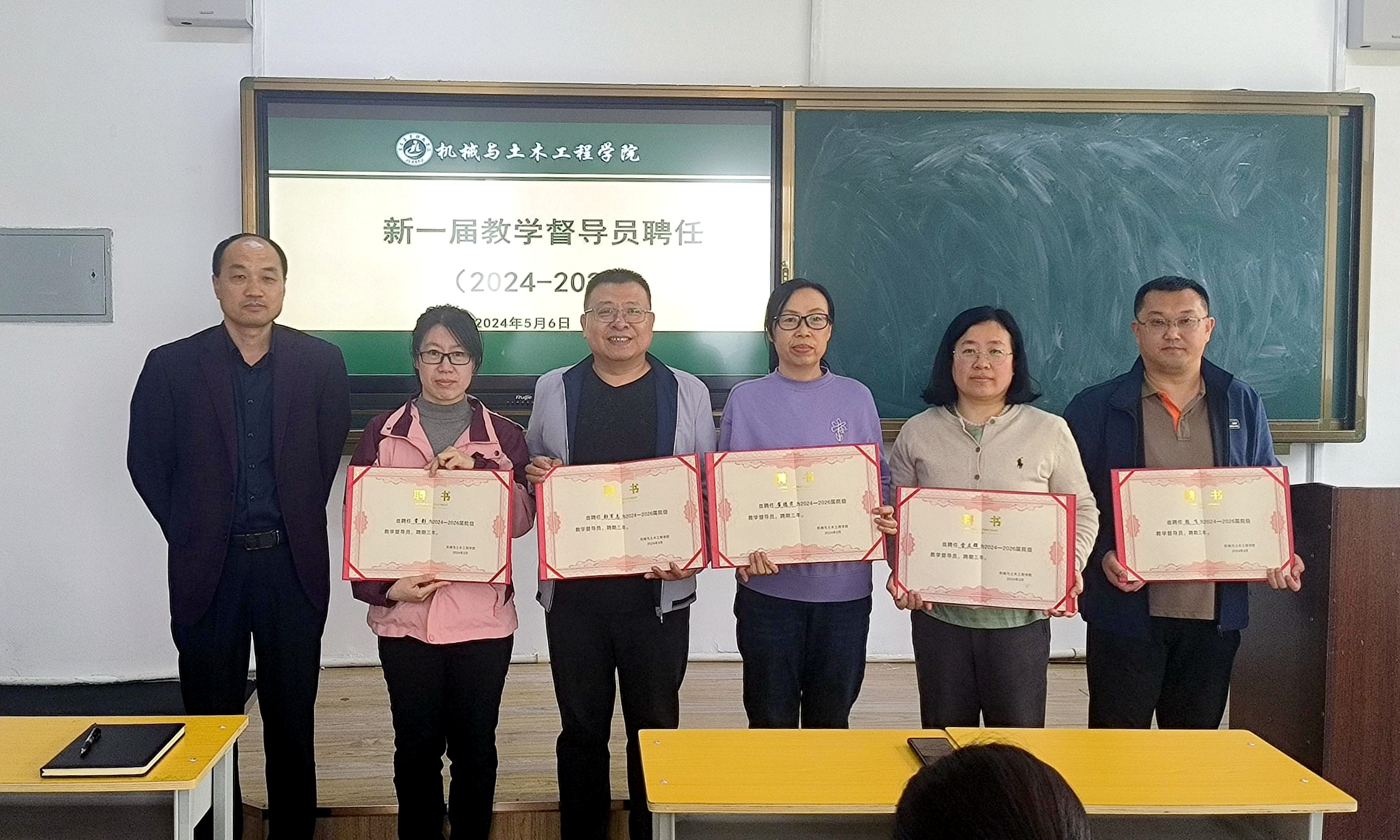 活动中,同时举行了新一届教学督导聘任仪式,学院院长明哲为崔德芹教授等5位新任教学督导员颁发聘书。明哲希望全体教学督导成员要切实发挥作用,坚持以“以导为主、以督为辅、督导结合、重在交流”的理念开展工作,为学院教育教学出谋划策,助力教学质量不断提升。