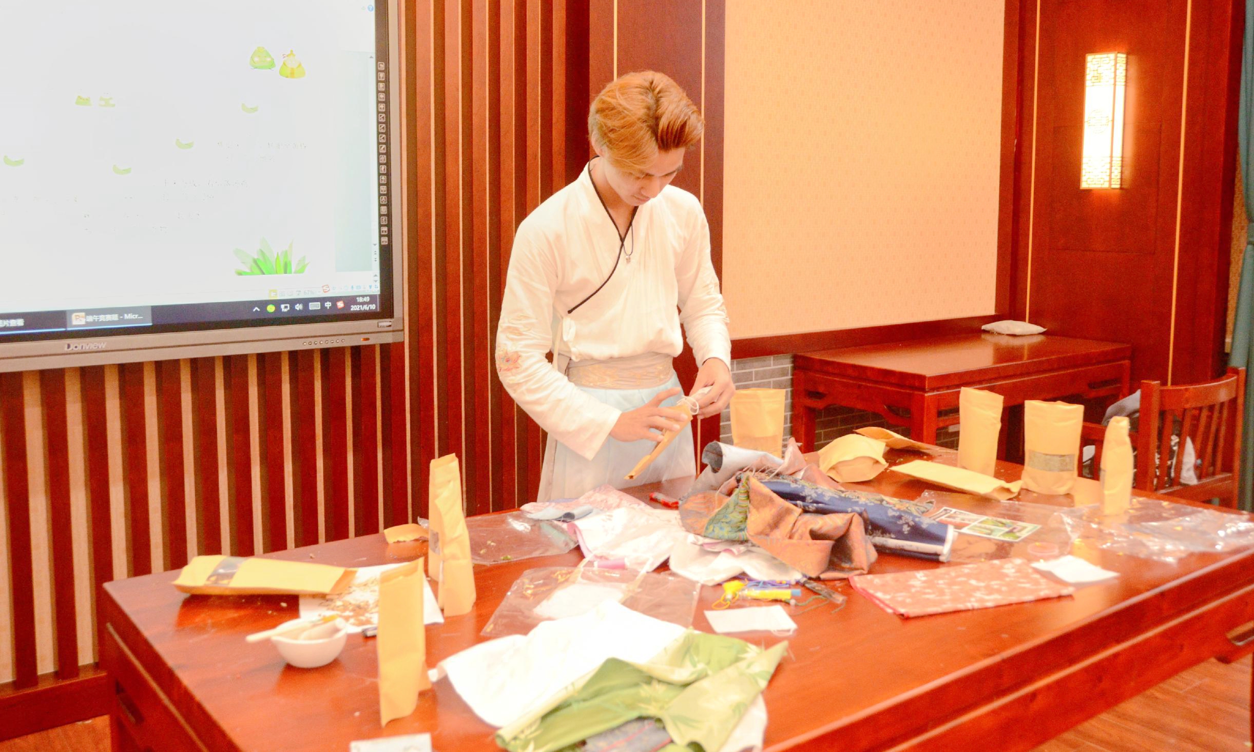 活动先由清韵霓裳汉服社社长安娜卓主持了端午节知识竞答,然后由汉服社的同学们分享制作香囊的经验,最后所有同学一起拿起针线、剪刀和布料等材料手工制作香囊。其中,汉服社的同学们都身穿华丽的汉服,配上淡雅的妆容,女生温婉大方,男生飘逸俊朗,在古香古色的文化空间内一针一线专心致志制作香囊的场景,仿佛带领现场的同学们穿越了时空,亲身领略了传统文化节日的风采。