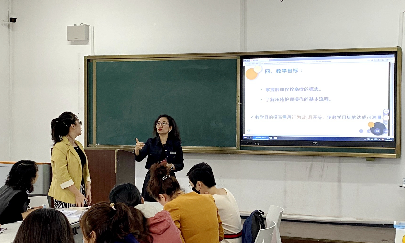 陈璐博士从大赛呈现要点和大赛常见误区出发,通过教学目标、教学设计等方面的详细讲解,诠释了智慧教学创新大赛比什么的具体内容。通过课程导入、参与、总结三部分对“智慧教学竞赛”提出了宝贵意见。陈璐也通过多米诺点名法、抢答风火轮等教学方法为我校教师展示了一堂生动的课堂教学。