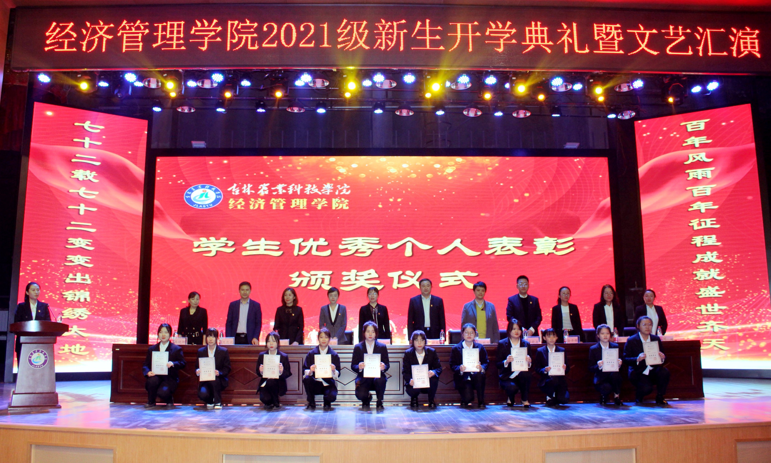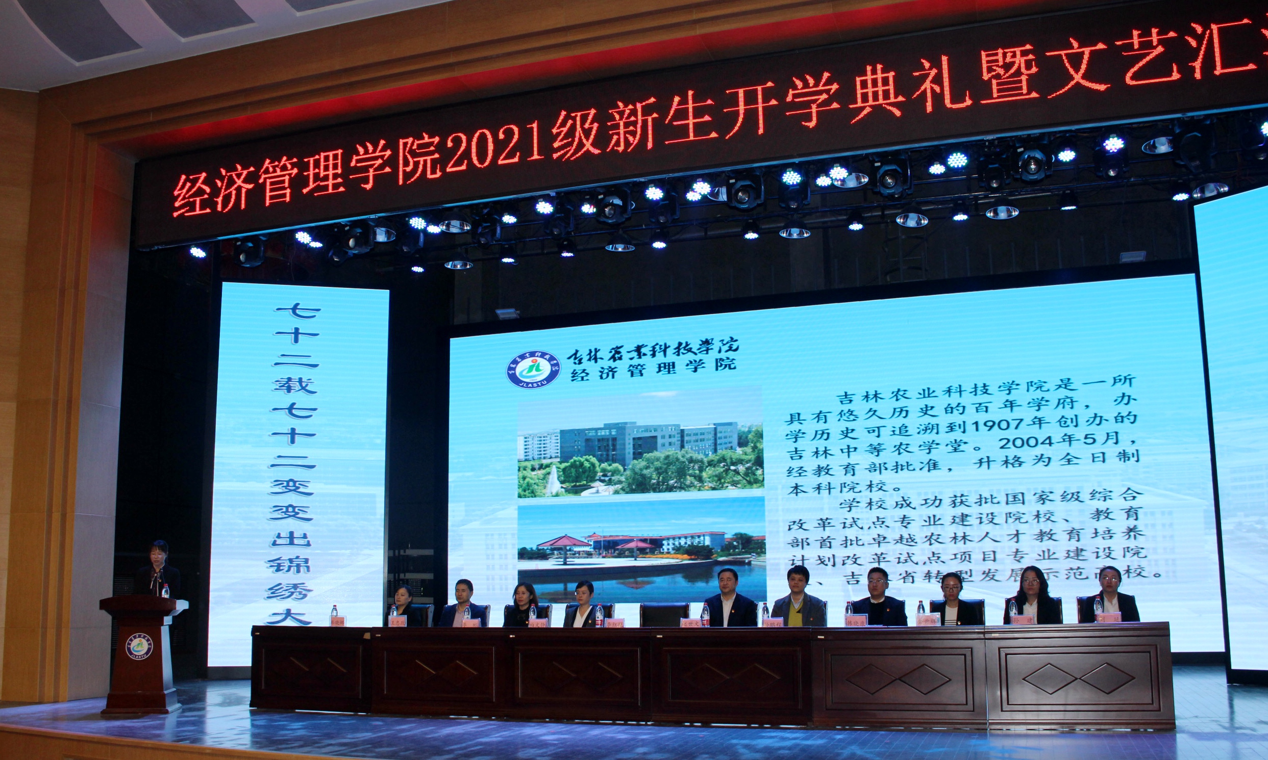 10月13日下午,经济管理学院在大学生活动中心举行2021级新生开学典礼。学院党总支书记赵世文,院长李红艳,副院长柏文静、孙鹏程,各系室主任、辅导员及2021级全体新生参加了典礼。典礼由党总支副书记金丽丽主持。