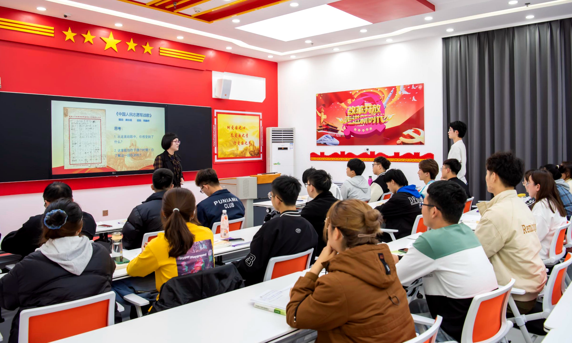 当日下午,吉林市经开区九年制学校德育校长李靖文以“以史为鉴、坚定信仰”为主题,以“抗美援朝、保家卫国”为主线,从“抗美援朝大事记、抗美援朝的意义、学习抗美援朝的精神”三个方面带学生重温了71年前抗美援朝战争的艰辛历程和伟大胜利,为我校2021级九站学习筑梦班学生讲述了一堂振奋人心、感人至深的思政课。课堂中,李校长环环相扣、层层递进,紧密结合新时代大学生实际,引导其积极弘扬伟大抗美援朝精神,以“雄赳赳、气昂昂”的饱满热情向着实现中华民族伟大复兴的中国梦继续奋勇前进。吉林市经开区九年制学校校长伊红赤、副书记宋艳红,吉林市第十八中学政治教研组组长丛文秋,我校马克思主义学院党总支书记韩宇、副院长张旭及三校思政课教师代表进行了现场观摩。